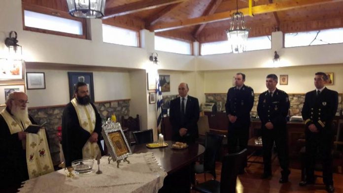 Αμέσως μετά τη Δοξολογία, όλοι μετέβησαν στο Δημαρχείο, όπου πραγματοποιήθηκε Αγιασμός από τους Αιδεσιμολογιώτατους π. Γεώργιο Σταματά και π. Νικόλαο Σταματά. Επίσης προσφέρθηκαν γλυκά, ποτά και ανταλλάχθηκαν ευχές για το νέο έτος.