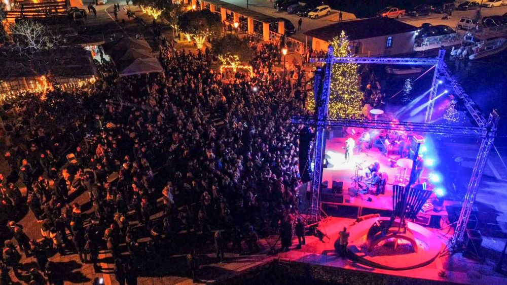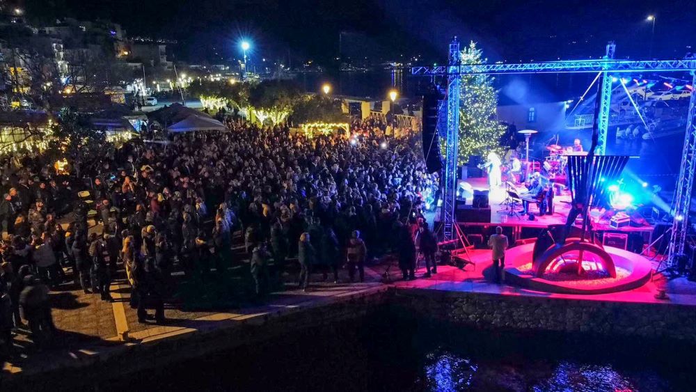 Κατακλύστηκε από κόσμο η παραλία της Σκιάθου στο ύψος του Μπούρτζι για το άναμμα του χριστουγεννιάτικου δέντρου που πραγματοποιήθηκε χθες, υπό τους ήχους της Ελένης Τσαλιγοπούλου.