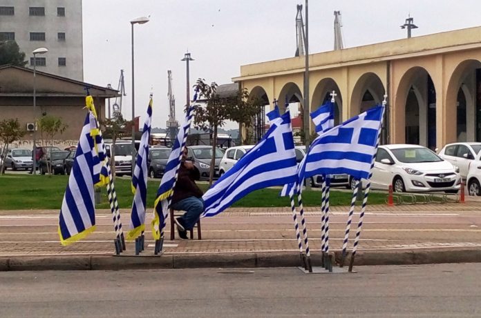 Ο συλληφθείς εντοπίστηκε στην παραλιακή οδό του νησιού, να διαθέτει προς πώληση οκτώ Ελληνικές σημαίες με τους ιστούς, που κατασχέθηκαν.