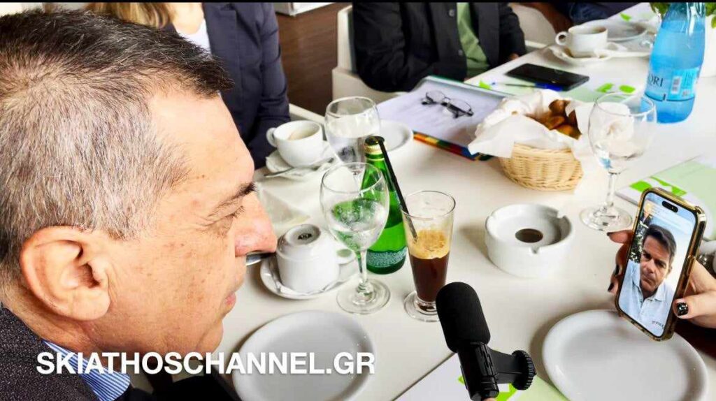 Στην σύσκεψη συμμετείχε μέσω τηλεδιάσκεψης (Skype) και ο πρόεδρος της Ένωσης Ξενοδόχων Σκιάθου, κ. Άκης Τσαρούχης -που βρίσκεται εκτός Ελλάδος για επαγγελματικούς λόγους- προσφέροντας τη δική του οπτική για την τουριστική αναβάθμιση του νησιού και τις ανάγκες των Ξενοδόχων.