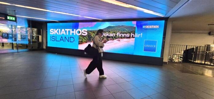 Η μοναδική ομορφιά της Σκιάθου θα προβάλλεται φέτος το διάστημα 2 έως 15 Ιουνίου 2025 με ψηφιακές οθόνες σε τέσσερις σταθμούς μετρό και σε έναν κεντρικό δρόμο στην Στοκχόλμη και σε ένα κεντρικό δρόμο στο Γκέτεμποργκ της Σουηδίας με στόχο την προσέλκυση επισκεπτών για την καλοκαιρινή περίοδο.