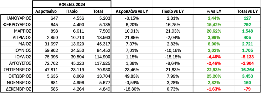 Περισσότεροι τουρίστες προτίμησαν το 2024 τη Σκιάθο με την αύξηση στις αφίξεις στο νησί του Παπαδιαμάντη να φτάνει στο 3,9% σύμφωνα με πρόσφατη έρευνα. Ωστόσο, σύμφωνα με τον πρόεδρο των ξενοδόχων Άκη Τσαρούχη η αύξηση αυτή προήλθε από την αυξημένη κίνηση του αεροδρομίου με τα προβλήματα στην ακτοπλοϊκή σύνδεση του νησιού να αποτελούν τροχοπέδη στην περεταίρω αύξηση των αφίξεων, κυρίως από Έλληνες επισκέπτες. Όπως τονίζει στο μήνυμα για τη χρονιά που άρχισε «Μια γενικότερη παρατήρηση για τα πιο κάτω νούμερα είναι ότι περιγράφουν τις αφίξεις στο νησί και όχι πραγματικούς επισκέπτες αφού μέρος αυτών μετά την άφιξη στο αεροδρόμιο θα διοχετευθούν στα άλλα δυο νησιά των Σποράδων.