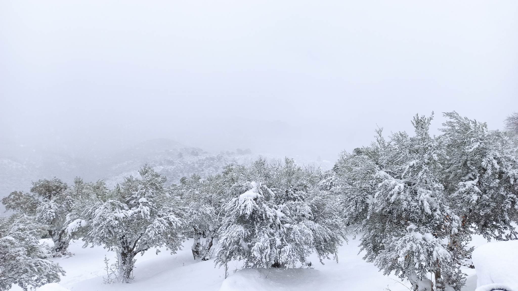 Στο μεταξύ, τα ορεινά σημεία της Σκιάθου έχουν κατακλυστεί από χιόνι, δεν συμβαίνει όμως το ίδιο και μέσα στην χώρα του νησιού.