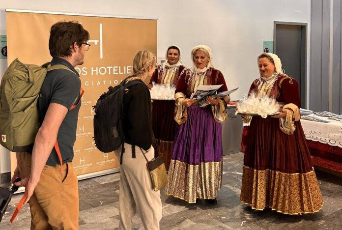 Την πρώτη πτήση εξωτερικού από την Αγγλία υποδέχτηκαν σήμερα ο αντιδήμαρχος Τουρισμού της Σκιάθου και μέλη της Ένωσης Ξενοδόχων του νησιού. Τους επισκέπτες τους περίμενε κατά την άφιξή τους στο νησί ένα παραδοσιακό κέρασμα, ενώ τα λεωφορεία των Συγκοινωνιών του νησιού ήταν έτοιμα για να τους μεταφέρουν στη χώρα και στις υπόλοιπες περιοχές που είχαν κλείσει τα καταλύματά τους.