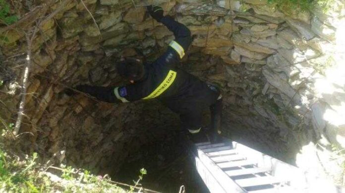 Οι πυροσβέστες πήγαν στο σημείο με τον ιδιοκτήτη, το σκυλί κατάλαβε ότι πήγαν να το βοηθήσουν, βοήθησε και εκείνο για να βγει, κάτι που τελικά έγινε με τη χρήση σχοινιών.