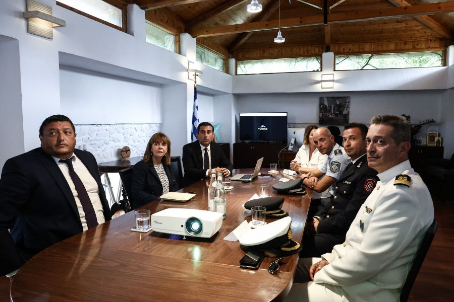 Στη συνέχεια, η Πρόεδρος της Δημοκρατίας μετέβη στο δημαρχείο και ενημερώθηκε από τον Δήμαρχο Θεόδωρο Τζούμα και τοπικούς φορείς για τα προβλήματα που αντιμετωπίζει το νησί εξαιτίας των πρόσφατων πλημμυρών.