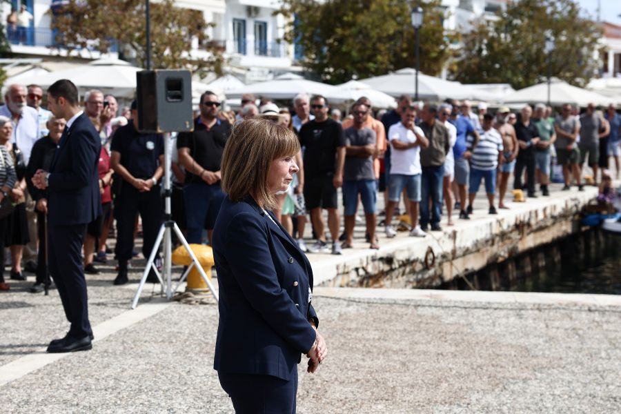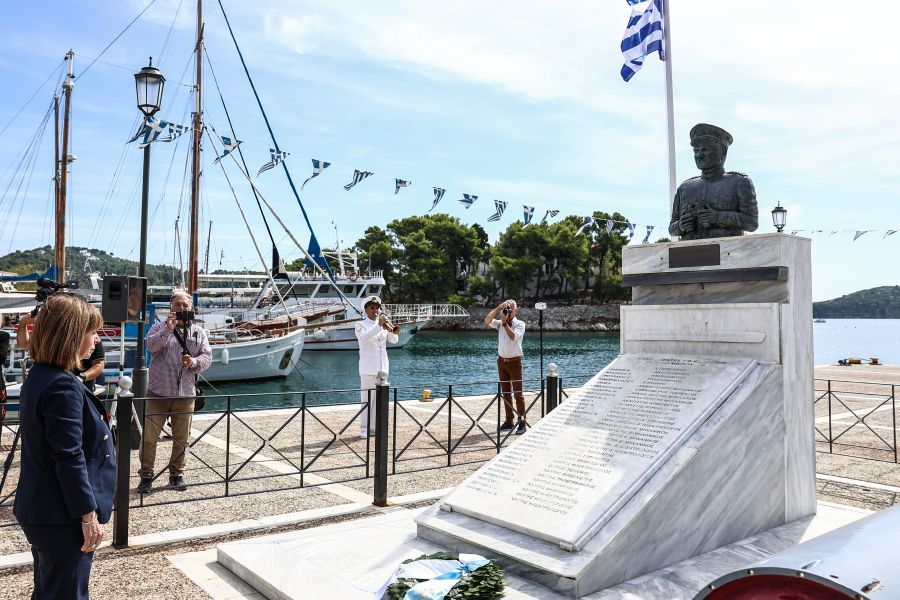 Την Σκιάθο επισκέφτηκε σήμερα η Πρόεδρος της Δημοκρατίας Κατερίνα Σακελλαροπούλου και παρέστη στην εκδήλωση που διοργάνωσε ο Δήμος για την 80η επέτειο της βύθισης του υποβρυχίου «Κατσώνης» από τους Γερμανούς κατά τη διάρκεια του Β’ Παγκόσμιου Πολέμου.
