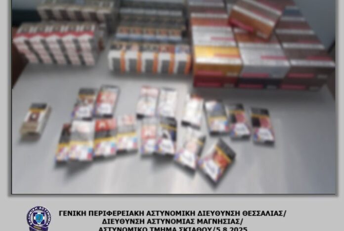 Ειδικότερα, χθες το μεσημέρι στη Σκιάθο, ο συλληφθείς, από κοινού με τον συνεργό του, προσποιούμενοι τους πελάτες και με τη μέθοδο της απασχόλησης, αφαίρεσαν από δύο μίνι μάρκετ συνολικά 38 συσκευασίες, περιέχουσες 10 πακέτα καπνικών προϊόντων η καθεμία.
