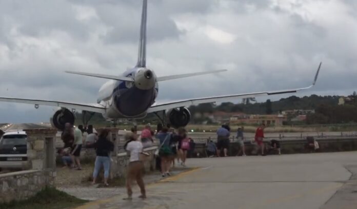 Στα πλάνα φαίνονται αρκετά άτομα να βρίσκονται πίσω από το τοιχάκι που χωρίζει τον διάδρομο απογείωσης από τον δρόμο που περνάει πίσω από το αεροδρόμιο της Σκιάθου.
