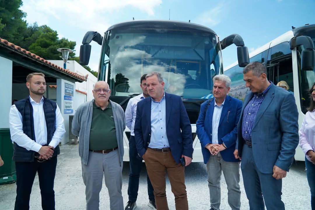 Η Σκόπελος γύρισε και επίσημα σελίδα στον τομέα των μεταφορών, μετά και την έγκριση παραχώρησης του έργου εκτέλεσης της Μικροσυγκοινωνίας από την Περιφέρεια Θεσσαλίας. Στο πρώτο δρομολόγιο επιβιβάστηκε ο Περιφερειάρχης Δημήτρης Κουρέτας που βρέθηκε σήμερα στην Σκόπελο με τους Αντιπεριφερειάρχες τουρισμού Νατάσσα Αδαμοπούλου, Ψηφιακής Διακυβέρνησης Γιάννη Αναστασίου και την εντεταλμένη Περιφερειακή Σύμβουλο Σποράδων Αμαλία Γραβάνη. Το πρώτο δρομολόγιο του λεωφορείου είχε προορισμό τον Αγνώντα, όπου η Περιφέρεια ολοκληρώνει τα έργα αναβάθμισης του λιμανιού και ο κ. Κουρέτας μαζί με τον δήμαρχο του νησιού κ. Σταμάτη Περίσση, τους δύο προέδρους των εταιρειών μεταφορικού έργου κ.κ. Κολυνδρίνη και Ευαγγελινό, δημοτικούς συμβούλους και πολίτες μετακινήθηκαν με λεωφορείο σύγχρονης τεχνολογίας.