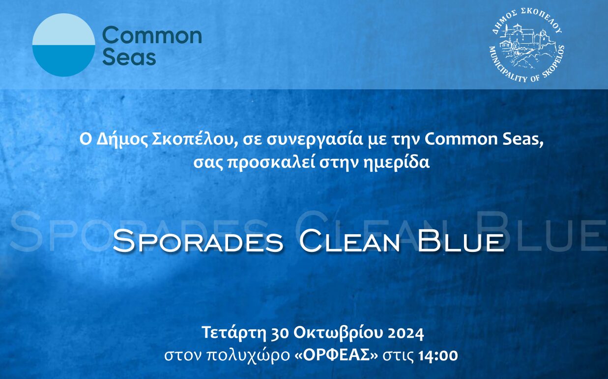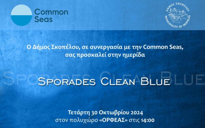 O Δήμος Σκοπέλου σε συνεργασία με την CommonSeas, διοργανώνει την Τετάρτη 30 Οκτωβρίου στις 14:00 στον πολυχώρο «ΟΡΦΕΑΣ» ημερίδα ενημέρωσης και ευαισθητοποίησης με θέμα:«SporadesCleanBlue ».