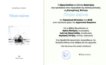 Παρουσιάζεται στη Σκόπελο η ποιητική συλλογή «Πέτρα Αιώνια» της Κατερίνας Ντίνου