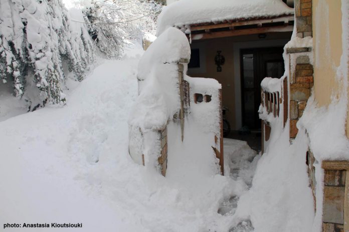 Σύμφωνα με τον ανταποκριτή του ΑΜΠΕ, από τις 12 το μεσημέρι, πρωτοφανούς έντασης και σφοδρότητας χιονοθύελλα πλήττει την Αλόννησο, και όσο περνούν οι ώρες οι συνθήκες επιδεινώνονται συνεχώς.