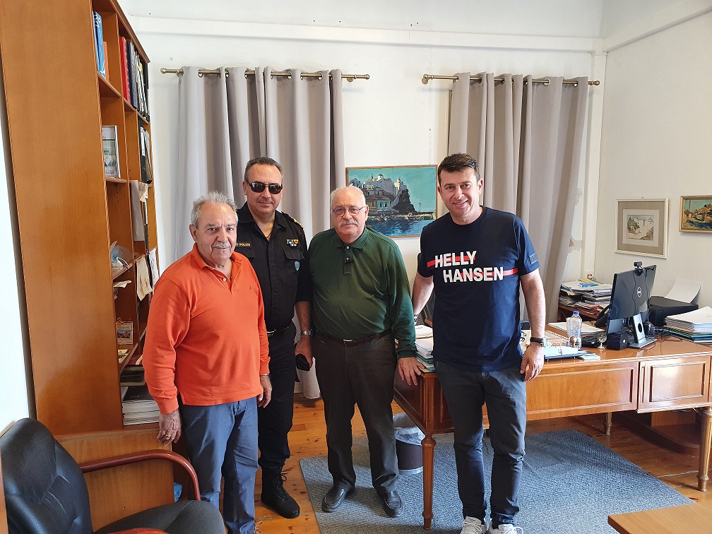 Συνάντηση του προέδρου της Πανελλήνιας Ομοσπονδίας Λιμενικών Κώστα Κυράνη με τον Δήμαρχο Σκοπέλου κ. Περίσση Σταμάτη παρουσία του Προϊσταμένου της Λιμενικής Αρχής Σκοπέλου Αντιπλοιάρχου ΛΣ Γκάρα Γεωργίου, πραγματοποιήθηκε με βασικό θέμα συζήτησης την χορήγηση επιδόματος διαμονής και σίτισης των στελεχών του ΛΣ-ΕΛ.ΑΚΤ.