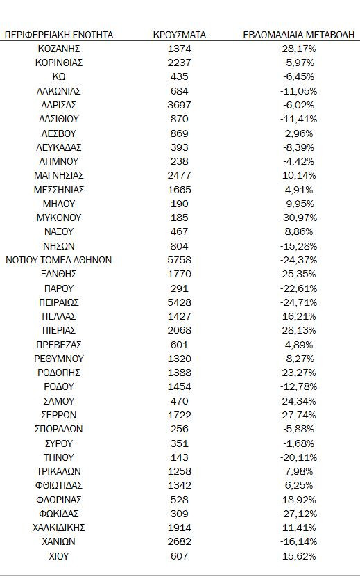 Σε 45.479 ανέρχονται τα κρούσματα της πανδημίας στο Λεκανοπέδιο της Αττικής, σε σύνολο 136.077 νέων μολύνσεων που ανακοίνωσε σήμερα ο ΕΟΔΥ για την εβδομάδα 18 Ιουλίου 2022 – 24 Ιουλίου.