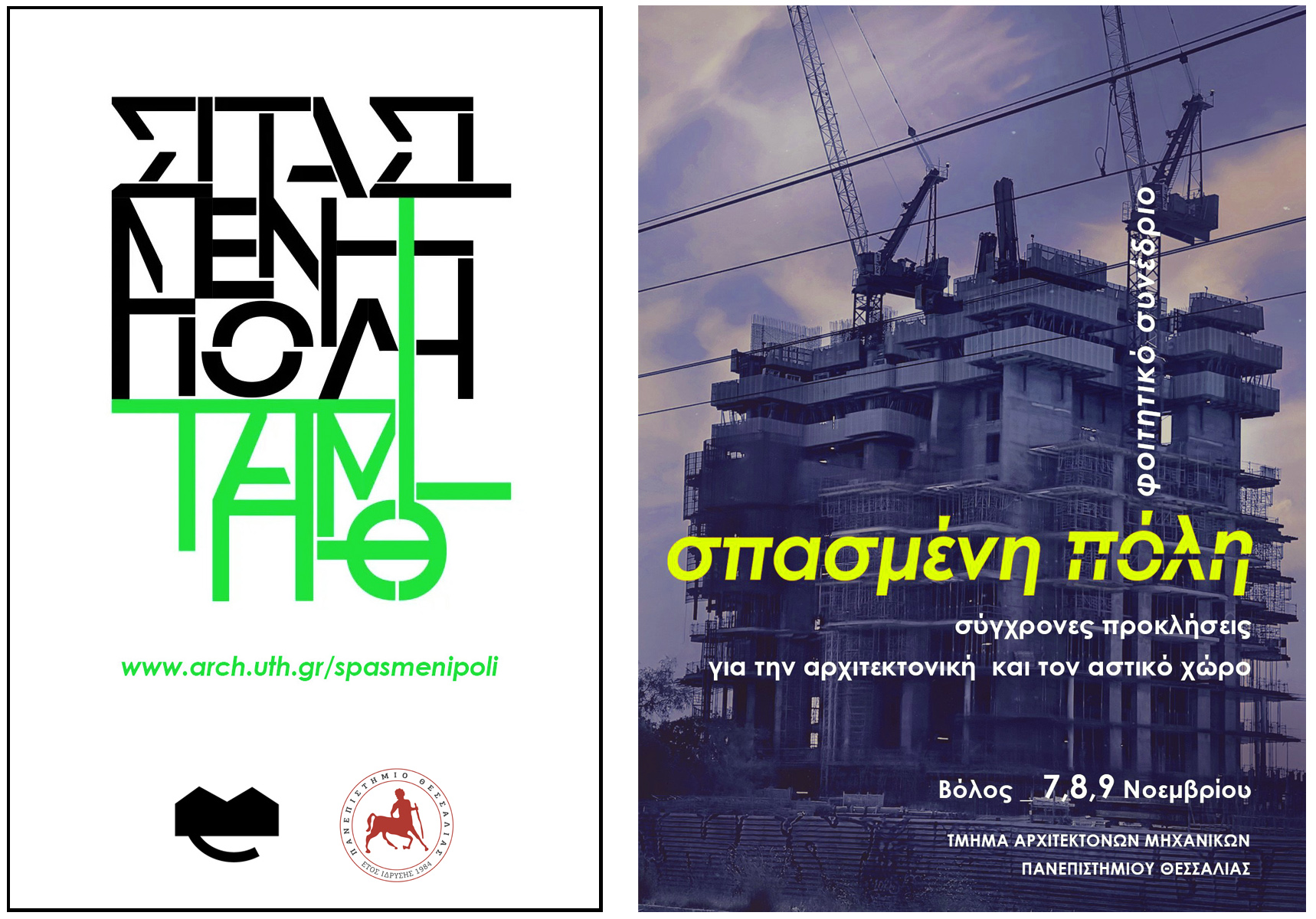 Στις 7, 8 και 9 Νοεμβρίου θα πραγματοποιηθεί στο Τμήμα Αρχιτεκτόνων Μηχανικών Πανεπιστημίου Θεσσαλίας πανελλήνιο φοιτητικό συνέδριο με τίτλο «Σπασμένη Πόλη. Σύγχρονες προκλήσεις για την αρχιτεκτονική και τον αστικό χώρο».