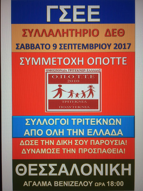 Το Δ.Σ. του Συλλόγου Γονέων Τριών Τέκνων Ν. Μαγνησίας “Η ΑΡΓΩ” καλεί τα μέλη του σε δυναμική συμμετοχή στο συλλαλητήριο διαμαρτυρίας, που διοργανώνει η ΓΣΕΕ με συμμετοχή της Ομοσπονδίας Τριτέκνων Ελλάδος Ο.Π.Ο.Τ.Τ.Ε.