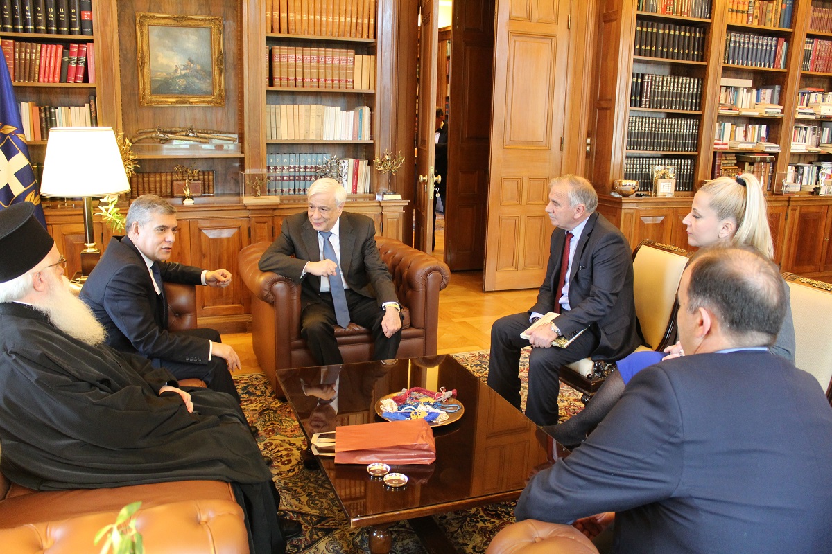 Συνάντηση αντιπροσωπείας με επικεφαλή τον Περιφερειάρχη Θεσσαλίας Κώστα Αγοραστό και τον Σεβασμιότατο Μητροπολίτη Δημητριάδος & Αλμυρού κ. Ιγνάτιο πραγματοποιήθηκε στο Προεδρικό Μέγαρο με τον Πρόεδρο της Δημοκρατίας κ. Προκόπη Παυλόπουλο, με θέμα τις επετειακές δράσεις και εκδηλώσεις που θα πραγματοποιηθούν το τριήμερο 5-7 Απριλίου στη Νέα Αγχίαλο.