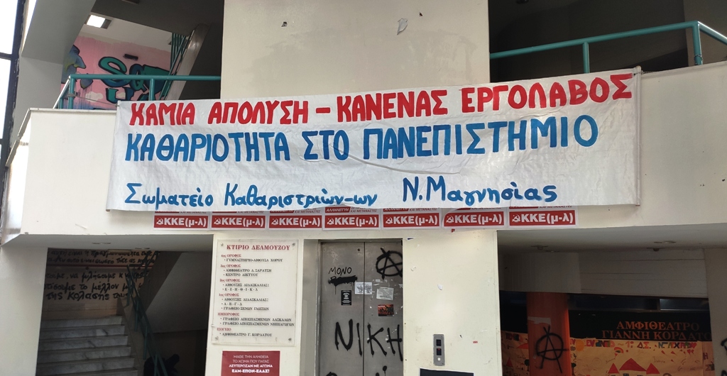 Η Λέσχη Εργαζομένων και Νεολαίας Βόλου εκφράζει την αλληλεγγύη της στον δίκαιο αγώνα που δίνει το σωματείο καθαριστριών-καθαριστών Ν. Μαγνησίας απέναντι στις αντεργατικές αποφάσεις της κεντρικής διοίκησης του ΠΘ για απόλυση των εργαζόμενων στην καθαριότητα σε Βόλο και Λαμία. Για μια ακόμη χρονιά οι πρυτανικές αρχές του Πανεπιστημίου αποφασίζουν – και διατάζουν – τη μη ανανέωση των συμβάσεων του προσωπικού καθαριότητας για το 2020, αποφασίζοντας ταυτόχρονα να προχωρήσει σε πρόσληψη εργολάβου με ΣΔΙΤ, τονίζει.