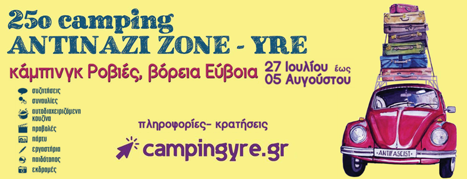 Συνεχίζεται το καλοκαιρινό πολιτικό/πολιτιστικό/κινηματικό ραντεβού που κρατάει 25 χρόνια τώρα, καθώς σύμφωνα με τους διοργανωτές, «το 25ο κάμπινγκ Antinazizone – YRE έκλεισε μέρος και ημερομηνίες».