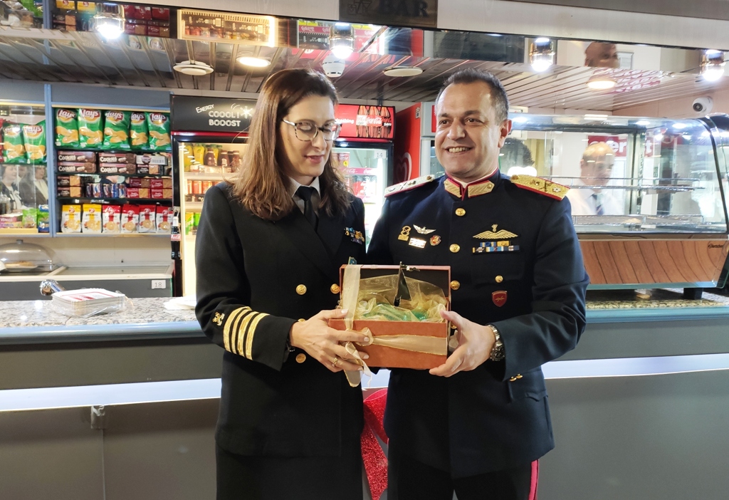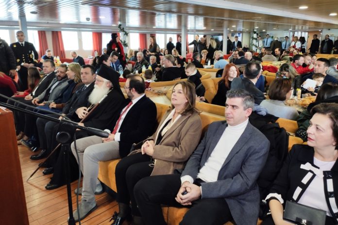 Παρουσία στρατιωτικών, πολιτικών και τοπικών φορέων του Νομού, έγινε σήμερα το μεσημέρι στο οχηματαγωγό – επιβατηγό «Εξπρές Σκιάθος» η κοπή της πρωτοχρονιάτικης πίτας του Κεντρικού Λιμεναρχείου Βόλου. Ο διοικητής της 1ης ΤΑΞΑΣ ταξίαρχος, Χαράλ. Μπαντιμαρούδης κέρδισε το φλουρί και του δόθηκε ως δώρο αναμνηστικό ομοίωμα σκάφους από τοπική επιχείρηση της πόλης.