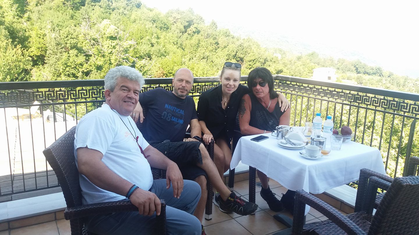 Στο Πήλιο απολαμβάνει λίγες μέρες ξεκούρασης ο πασίγνωστος ο τραγουδιστής των Deep Purple και των Rainbow Joe Lynn Turner που βρίσκεται στην Ελλάδα. Ο Joe Lynn Turner θα εμφανιστεί με τον Γιώργο Γάκη στο θέατρο “Τζένη” στην Τσαγκαράδα το Σάββατο 16 Σεπτεμβρίου. Στη φωτογραφία με τον πρόεδρο της Ένωσης Ξενοδόχων Μαγνησίας Γιώργο Ζαφείρη, τον ιδιοκτήτη του ξενοδοχείου “Χαμένος Μονόκερος” Χρήστο Μάρτζο και μια φίλη τους, τρώγοντας πρωϊνό σήμερα το πρωί.