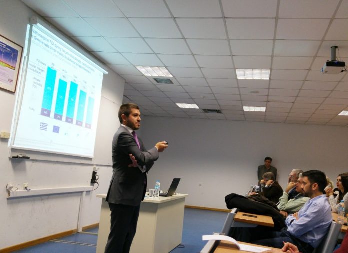 Κατάμεστη η αίθουσα την Τετάρτη 2 Νοεμβρίου 2016, στη διάλεξη της σειράς σεμιναρίων των μεταπτυχιακών προγραμμάτων «Νέα Επιχειρηματικότητα, Καινοτομία και Ανάπτυξη» και «Επενδύσεις και Περιφερειακή Ανάπτυξη». Ομιλητής ήταν ο κ. Γεωργακόπουλος Παναγιώτης, Junior Partner στην εταιρία “McKinsey & Company” με θέμα: «Η Ελλάδα 10 χρόνια μπροστά: Προσδιορίζοντας το νέο μοντέλο ανάπτυξης στην Ελλάδα».