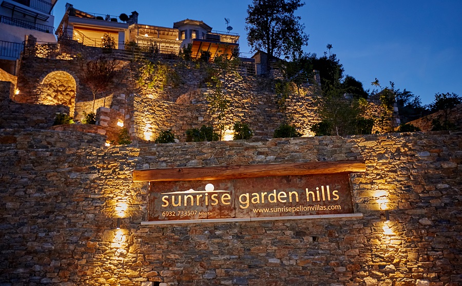 Sunrise Garden Hills είναι το νέο δημιούργημα του γνωστού Βολιώτη αρχιτέκτονα Δημήτρη Φιλιππιτζή και της ταλαντούχας ομάδας του. Το συγκρότημα των τριών ανεξάρτητων διαμερισμάτων, βρίσκεται στο βουνό των Κενταύρων, στο υπέροχο Πήλιο και συνδυάζει την πολυτέλεια με τη χρήση φυσικών και οργανικών υλικών, ενώ η αίσθηση του φωτός και της φύσης είναι διάχυτη σε κάθε γωνιά του. Φυσικά η μαγική θέα του Αιγαίου, κόβει την ανάσα.