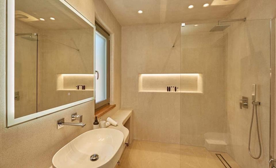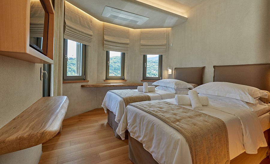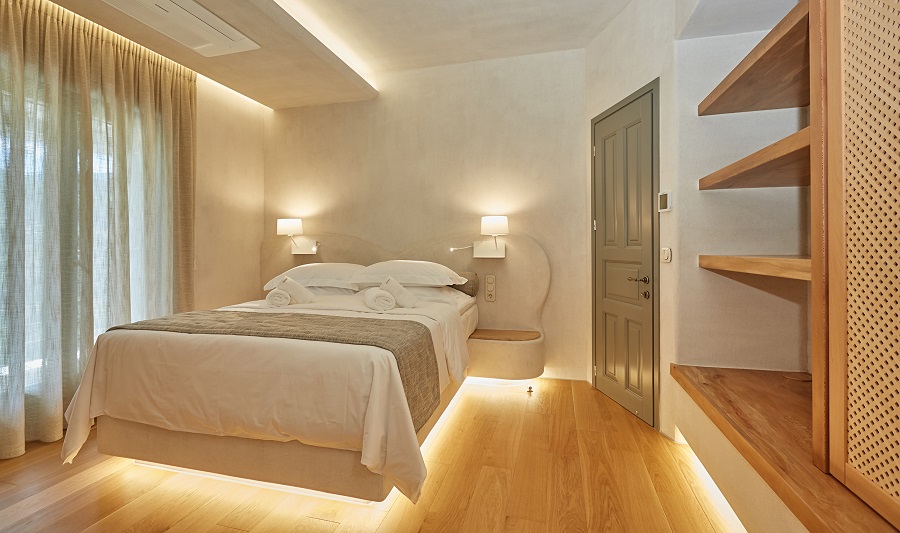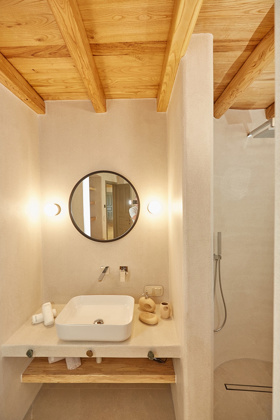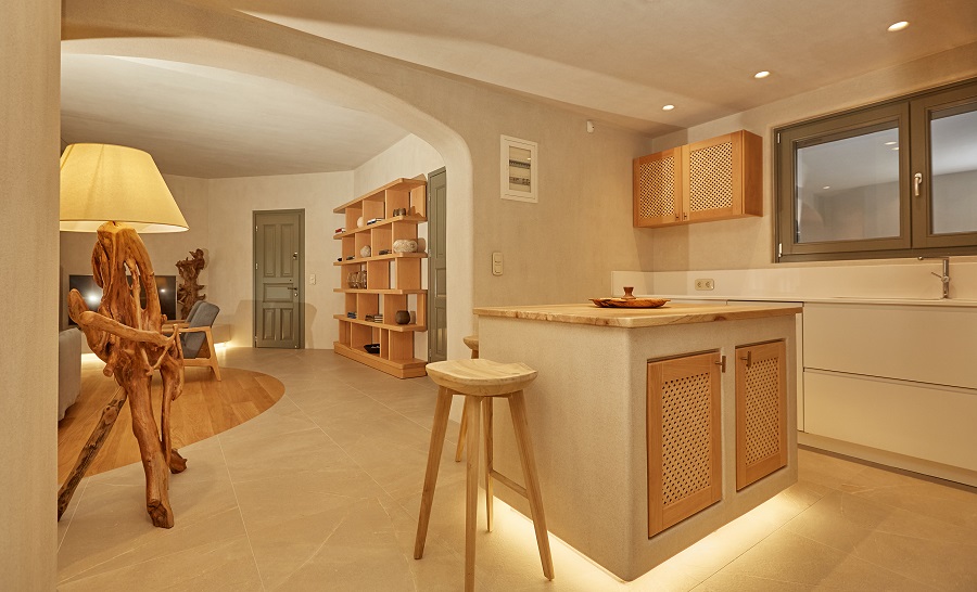 Η εναλλαγή φυσικών υλικών όπως το κουρασάνι, το ξύλο και η πέτρα, δίνουν, στην ευκαιριακή εμπειρία της ολιγοήμερης διαβίωσης, μία πνοή χαλάρωσης και ισορροπίας, προσκαλώντας τον χρήστη να απολαύσει τον πολυεπίπεδο χαρακτήρα της φιλοξενίας.