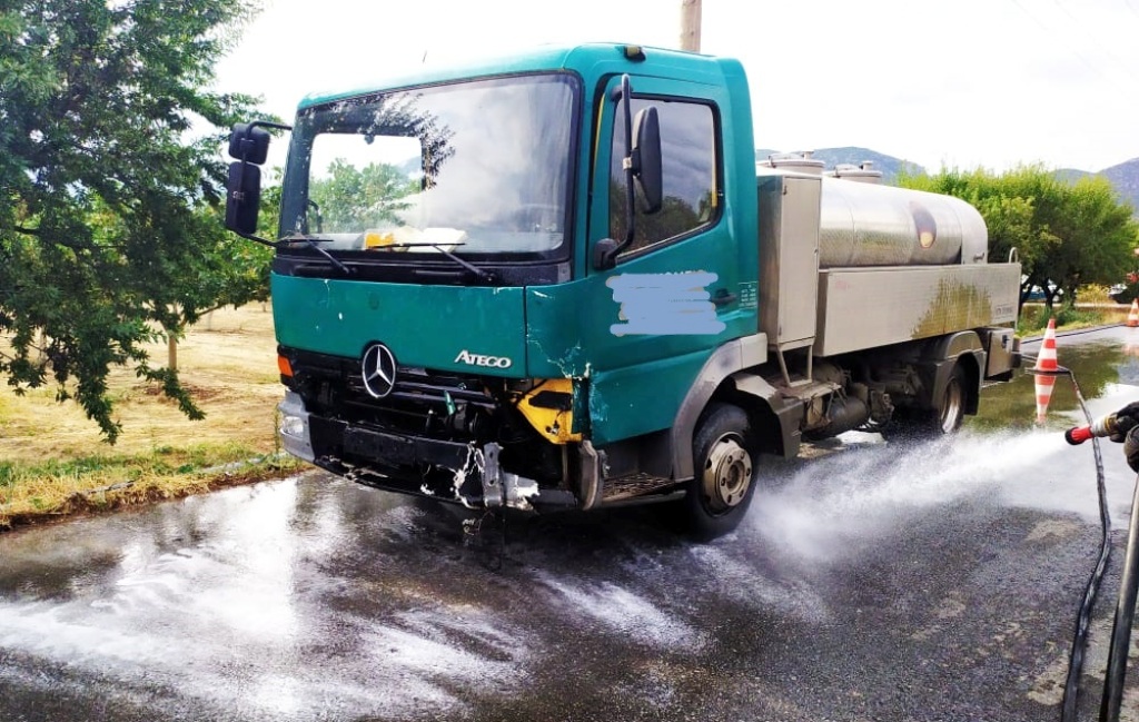 ένα ΙΧ αυτοκίνητο συγκρούστηκε με μικρό βυτιοφόρο όχημα που μετέφερε γάλα.