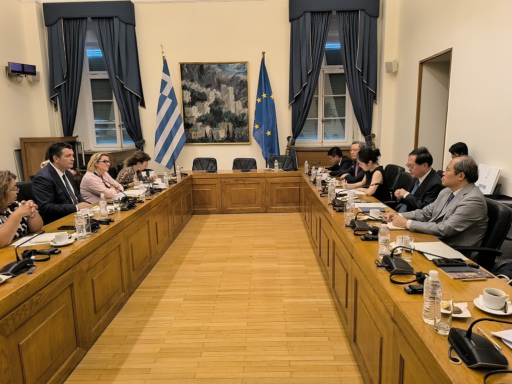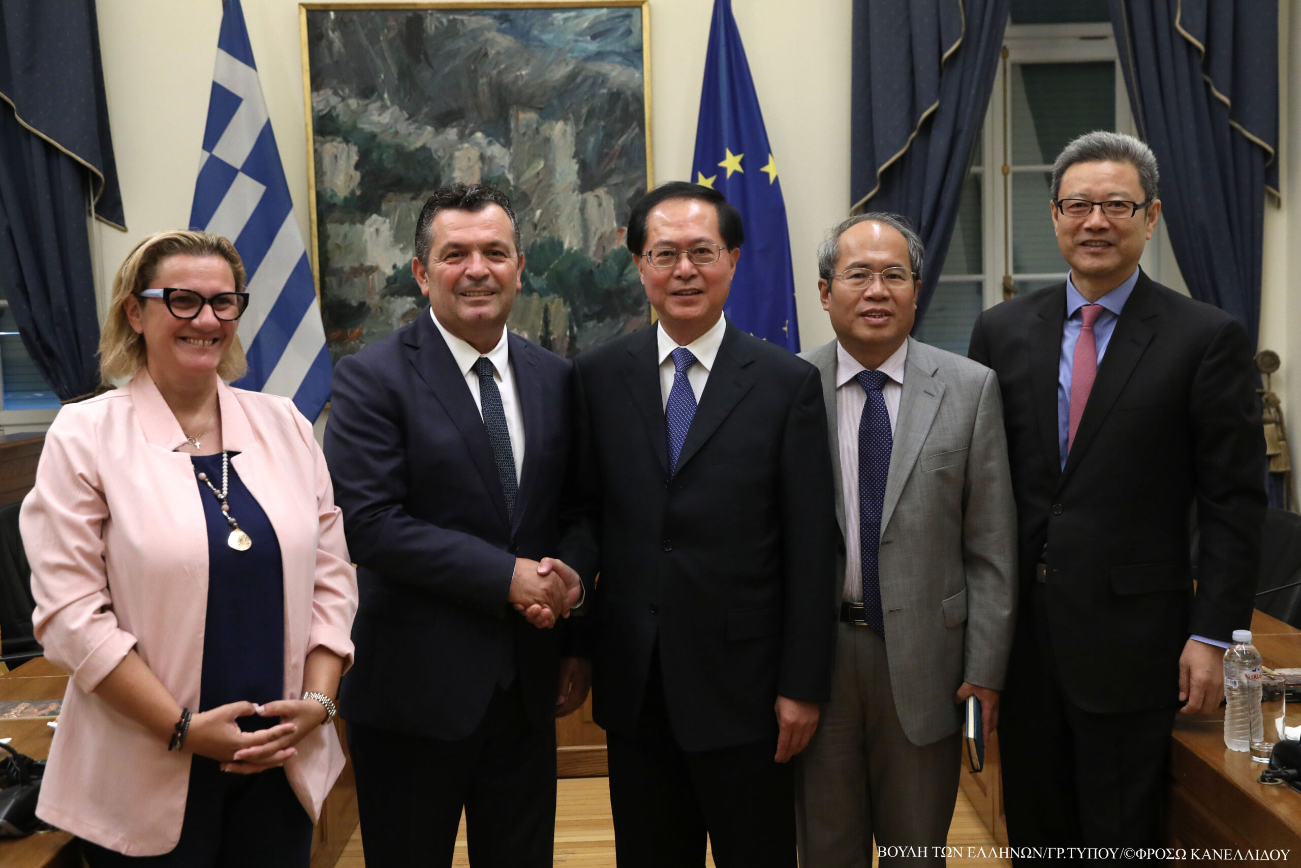 Το προεδρείο της Διαρκούς Επιτροπής Παραγωγής και Εμπορίου της Βουλής των Ελλήνων, εκπροσωπούμενο από τον πρόεδρο κ. Χρήστο Μπουκώρο και τη γραμματέα κ. Μαρία Ελένη Σούκουλη, συναντήθηκε με πενταμελή αντιπροσωπεία της Επιτροπής Πληθυσμού, Πόρων και Περιβάλλοντος της Πολιτικής Συμβουλευτικής Διάσκεψης του Κινεζικού Λαού, υπό τον πρόεδρό της κ. Che Jun.