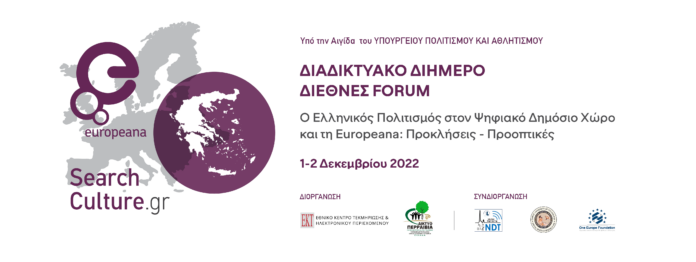 Το Εθνικό Κέντρο Τεκμηρίωσης και Ηλεκτρονικού Περιεχόμενου (ΕΚΤ) και ο Δευτεροβάθμιος Μη Κερδοσκοπικός Οργανισμός «Δίκτυο ΠΕΡΡΑΙΒΙΑ», σε συνδιοργάνωση με το Πανεπιστήμιο Δυτικής Αττικής, την έδρα UNESCO του Τεχνολογικού Πανεπιστήμιου Κύπρου και το Ευρωπαϊκό Ινστιτούτο Πολιτισμού, Περιβάλλοντος και Επιστημών, παίρνουν μια εξαιρετική πρωτοβουλία και προσκαλούν όσους όσοι ασχολούνται με τις νέες τεχνολογίες και τον Ελληνικό Πολιτισμό, σε ένα διήμερο διεθνές διαδικτυακό Forum, με τίτλο «Ο Ελληνικός Πολιτισμός στον Ψηφιακό Δημόσιο Χώρο και την Europeana-Προκλήσεις –Προοπτικές». Το Forum θα πραγματοποιηθεί διαδικτυακά στις 1 και 2 Δεκεμβρίου και τελεί υπό την Αιγίδα του Υπουργείου Πολιτισμού και Αθλητισμού και οι δωρεάν εγγραφές παρακολούθησης συνεχίζονται με αμείωτο ρυθμό.