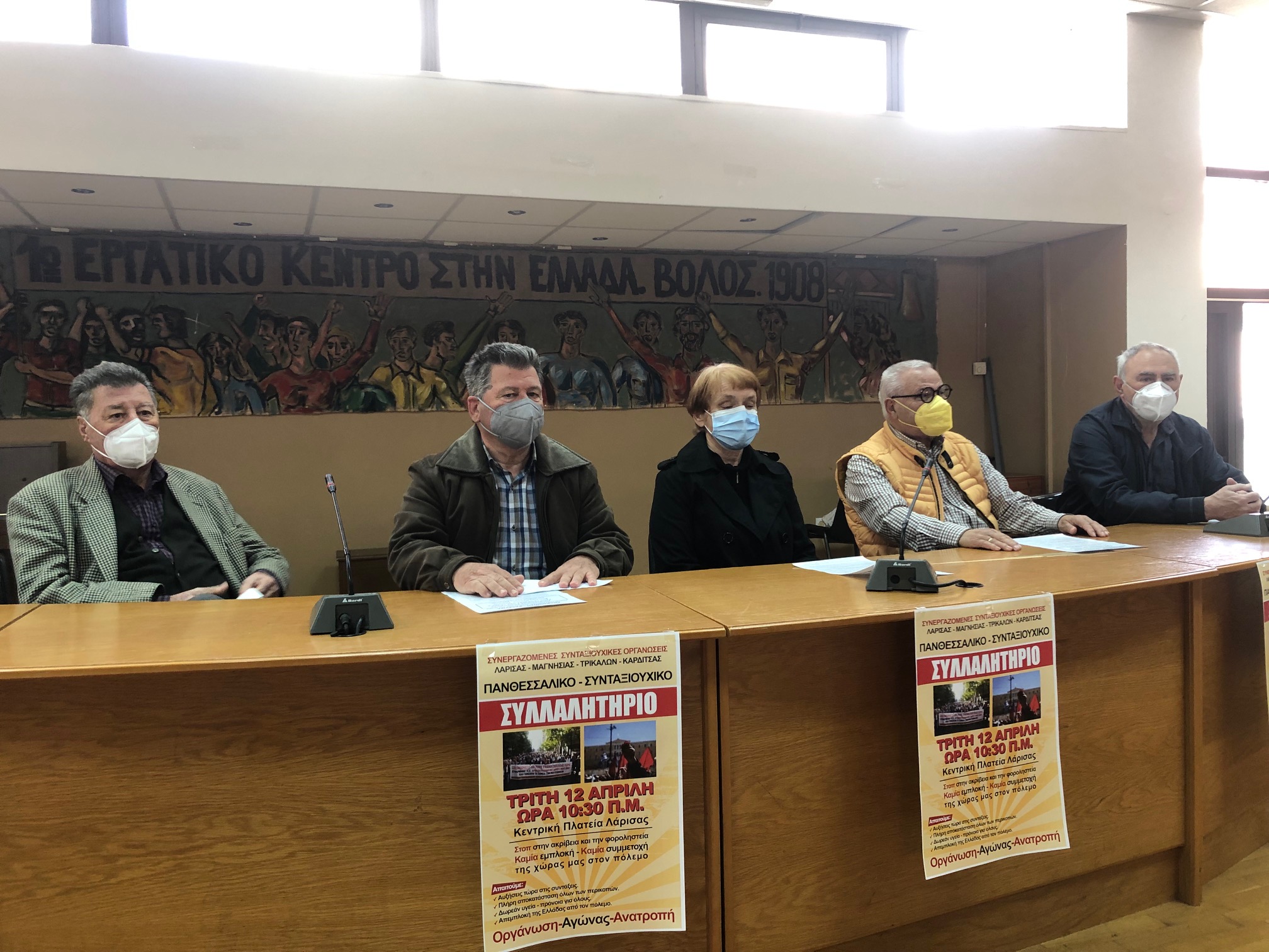 Κάλεσμα απηύθυναν οι Συνταξιουχικές Οργανώσεις με τους προέδρους και τους εκπροσώπους τους, να συμμετάσχουν όλοι οι συνταξιούχοι στην Πανθεσσαλική Συγκέντρωση, την Τρίτη 12 Απριλίου, στις 10.30 το πρωί, στην Κεντρική Πλατεία της Λάρισας, με συνέντευξη Τύπου που πραγματοποιήθηκε σήμερα το πρωί στο Εργατικό Κέντρο της πόλης. «Είμαστε ξανά στο ιερό πεζοδρόμιο του αγώνα και διεκδικούμε ό, τι έχουμε πληρώσει με τη δουλειά μας», επεσήμαναν χαρακτηριστικά.