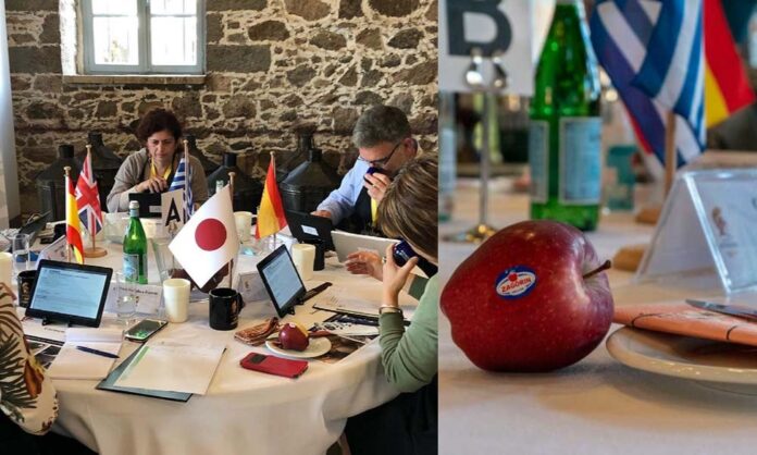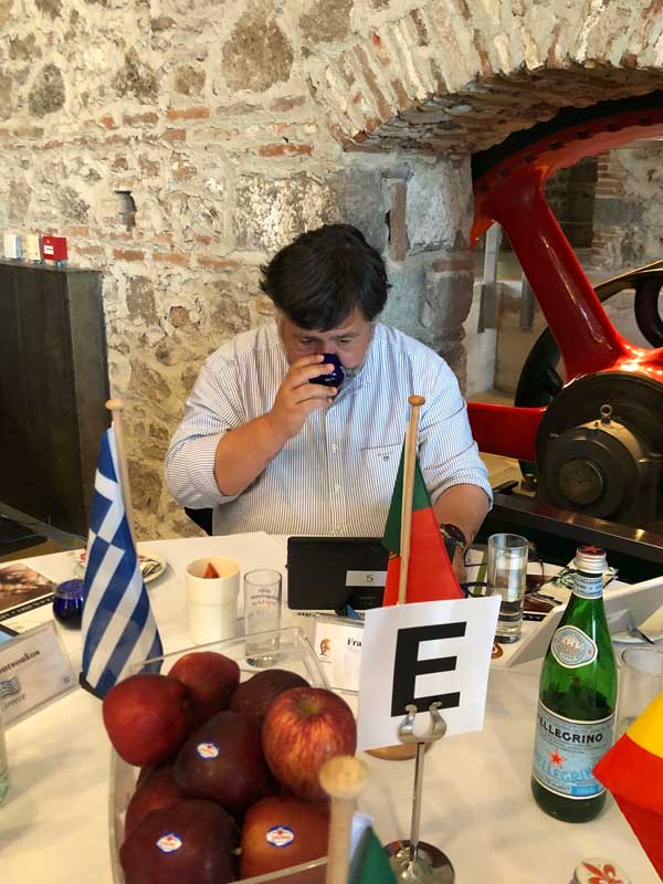 Σημαντικό στοιχείο όμως από τη διοργάνωση είναι, ότι ένα άλλο αγροτικό προϊόν, το μήλο, θεωρείται «εργαλείο» για τους κριτές. Οι δοκιμαστές μεταξύ των δοκιμών από διαφορετικά ελαιόλαδα, επιβάλλεται να «καθαρίζουν» τη γεύση τους, ώστε να αξιολογήσουν άρτια το υπό εξέταση δείγμα ελαιολάδου. Στον κόσμο της γευσιγνωσίας θεωρείται ότι μπορούν να επιτύχουν το καλύτερο επιθυμητό αποτέλεσμα τρώγοντας μετά από κάθε δοκιμή ένα κομμάτι μήλου.