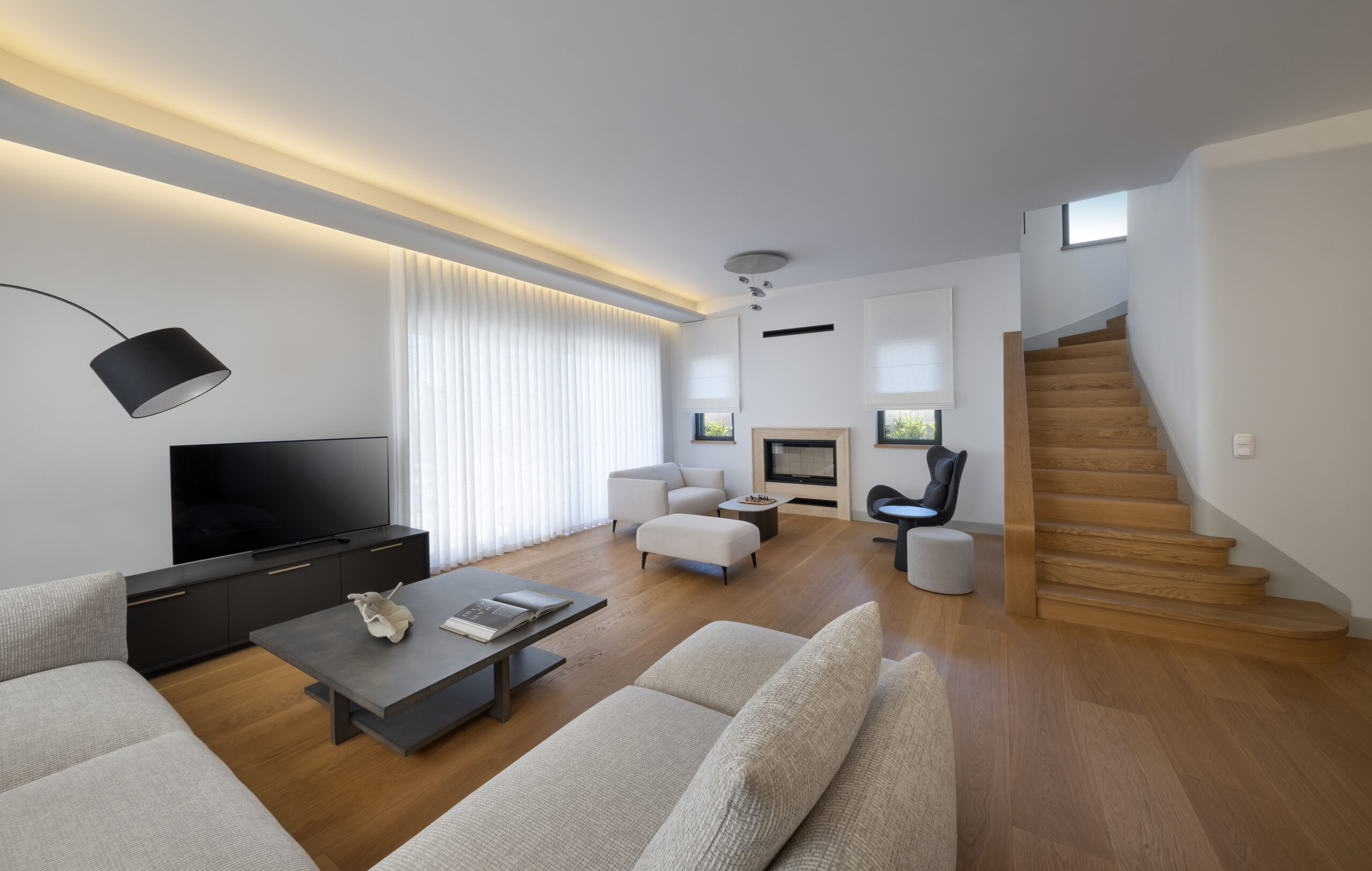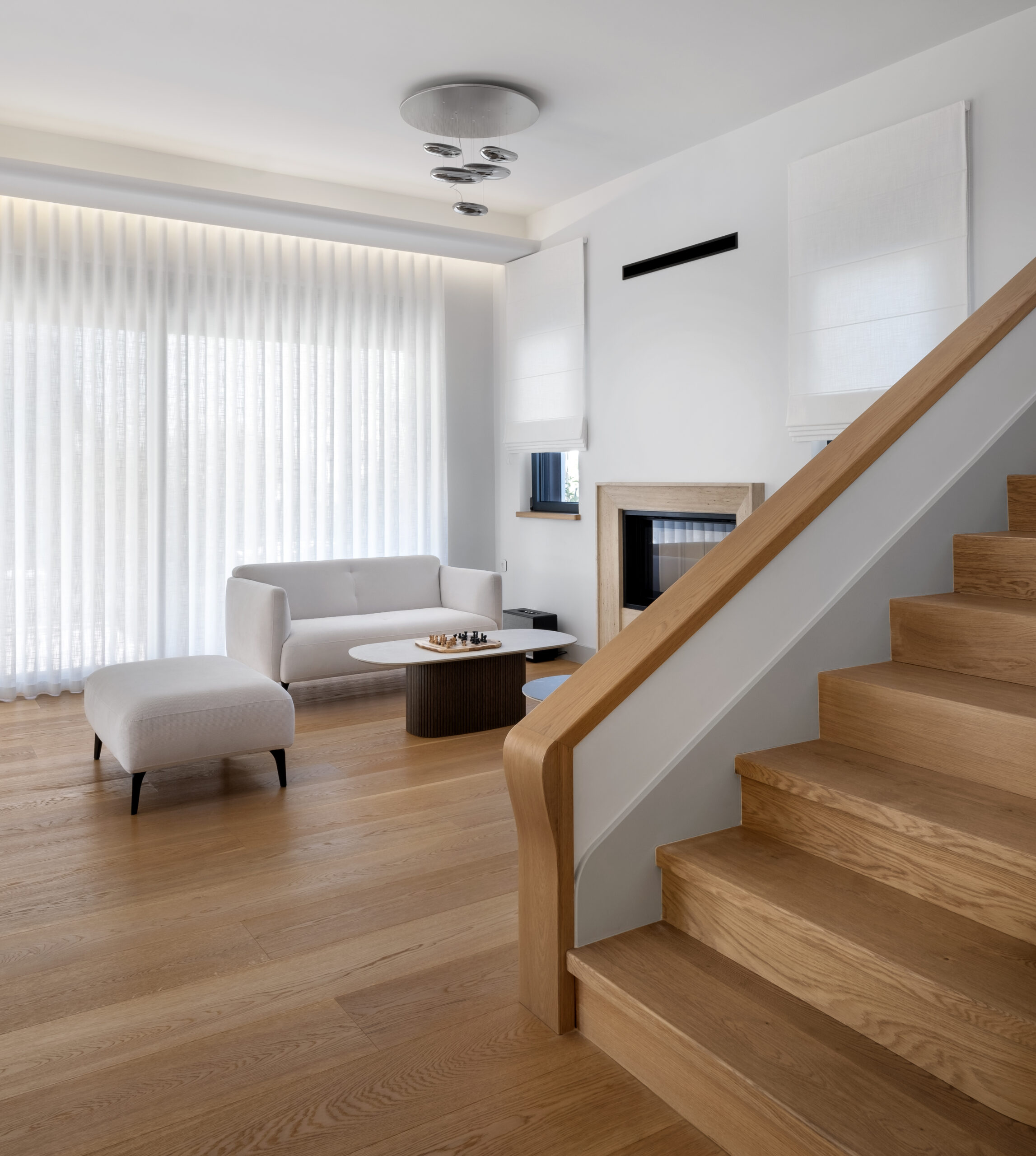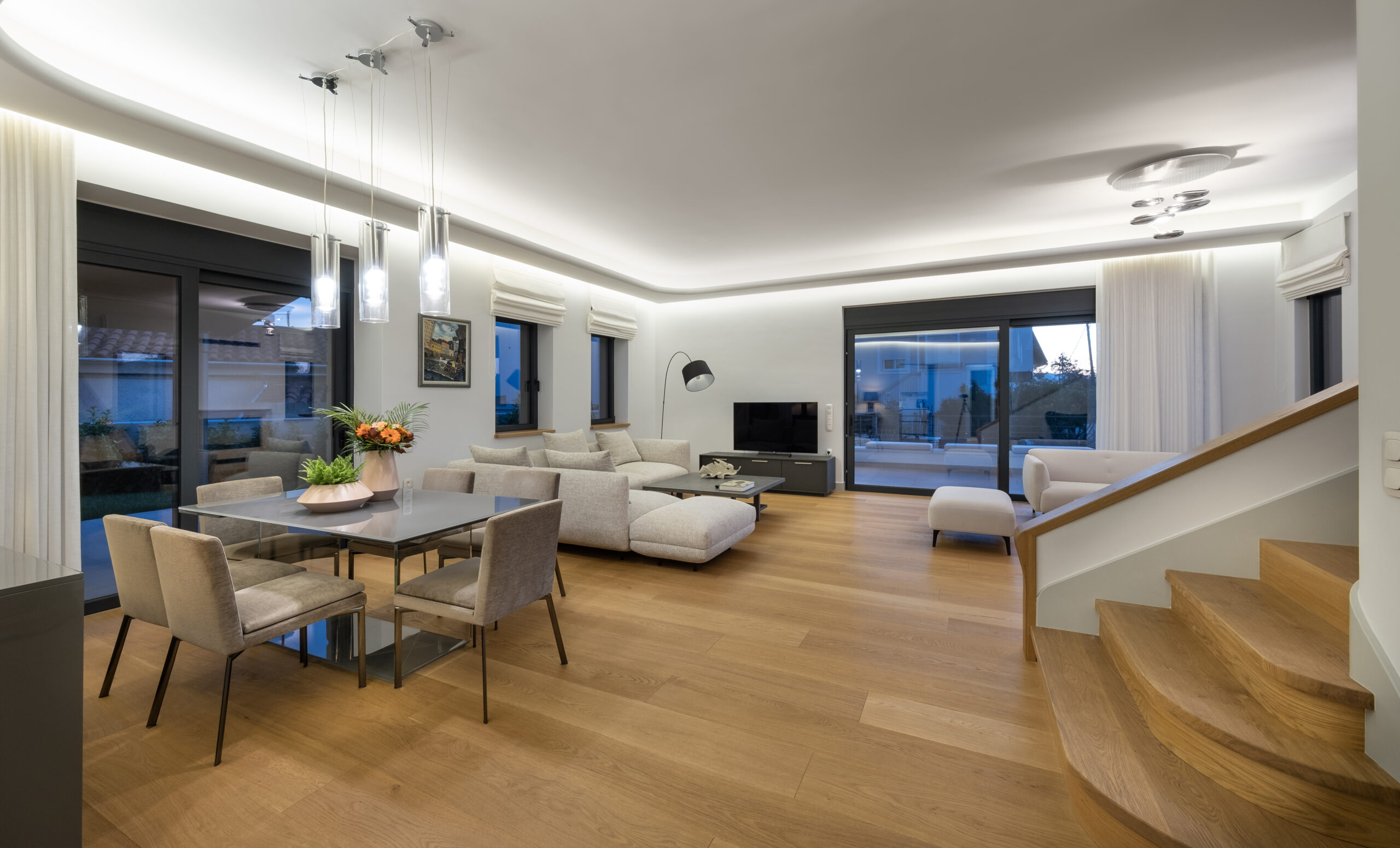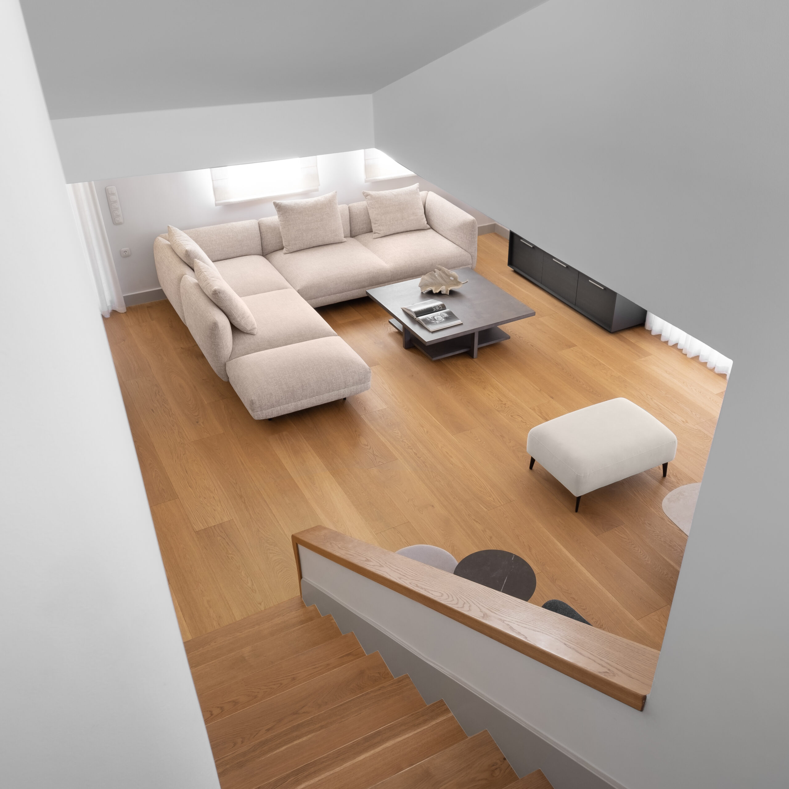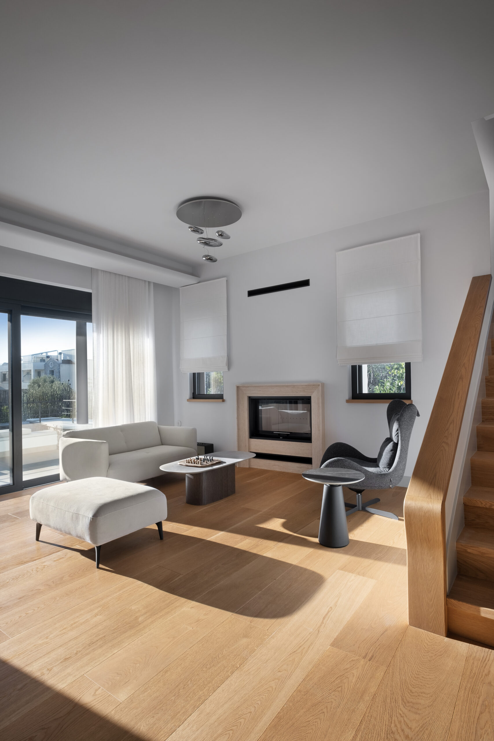 Σχεδιασμένο για μια τετραμελή οικογένεια εκφράζει έναν τρόπο κατοίκησης που συνδυάζει τη λειτουργικότητα με τη ζεστασιά του οικείου.