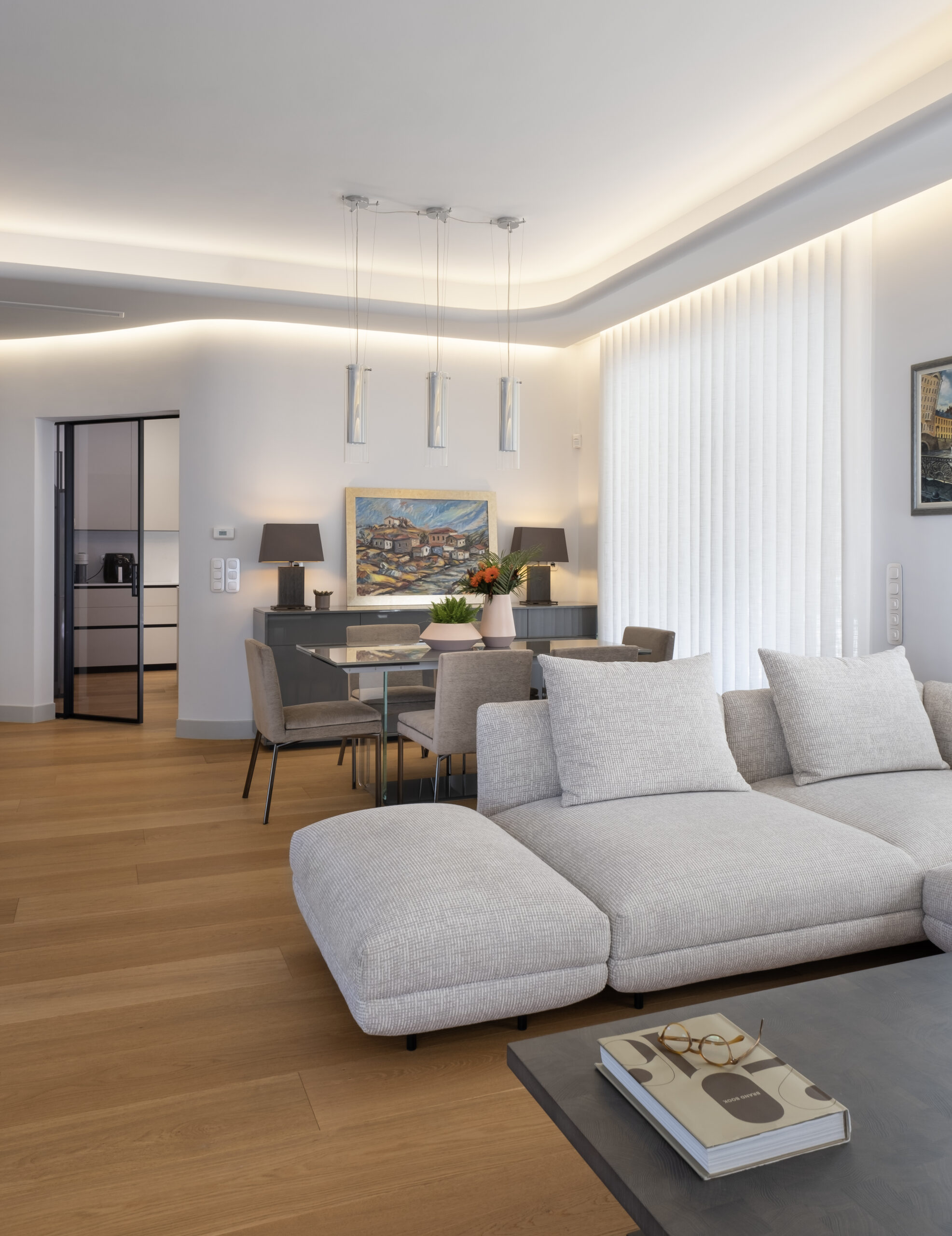 Ενδεικτικά οι ψευδοροφές ενσωμάτωσης των κλιματιστικών μονάδων λειτουργούν ταυτόχρονα και ως φορέας δημιουργίας κρυφού φωτισμού.