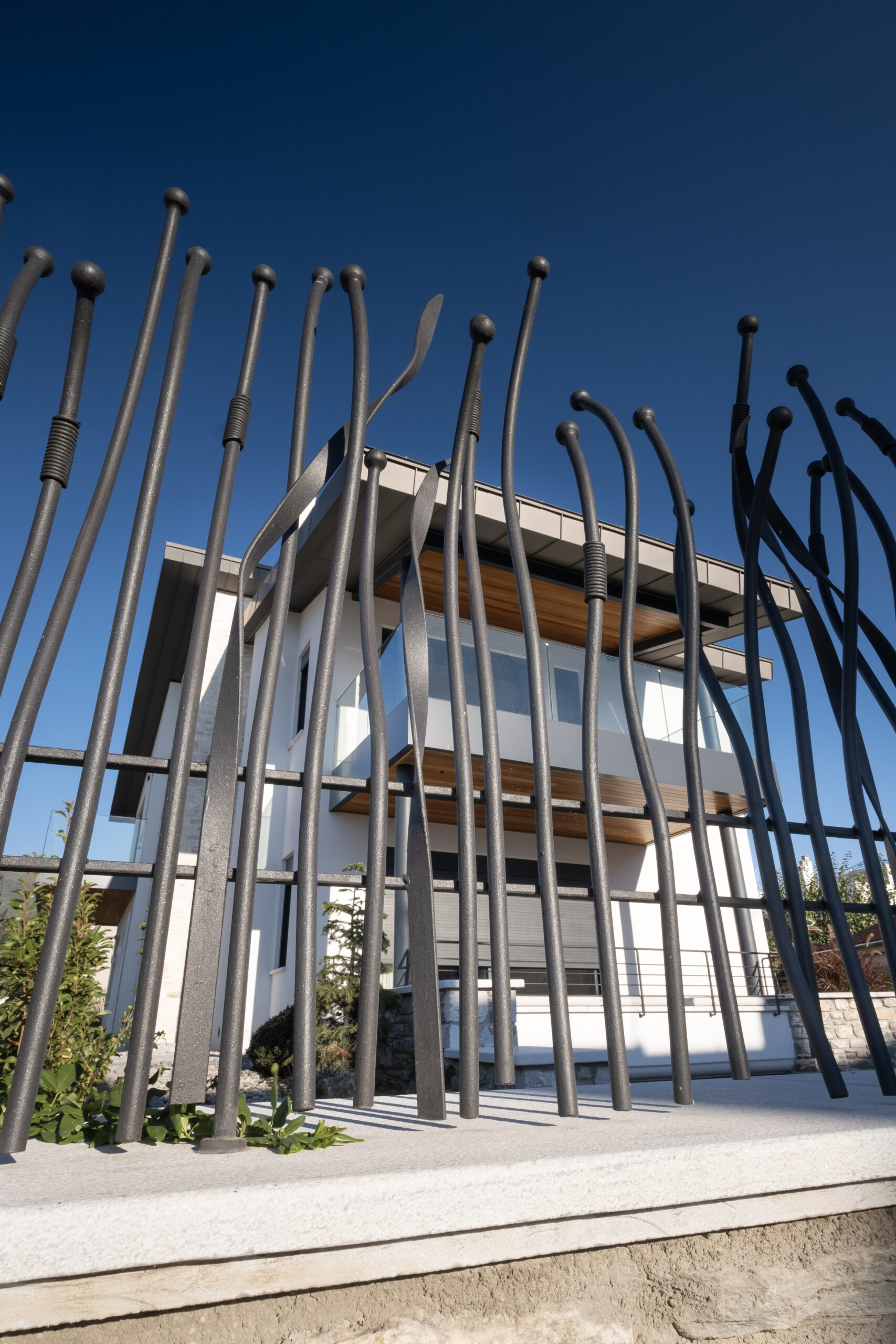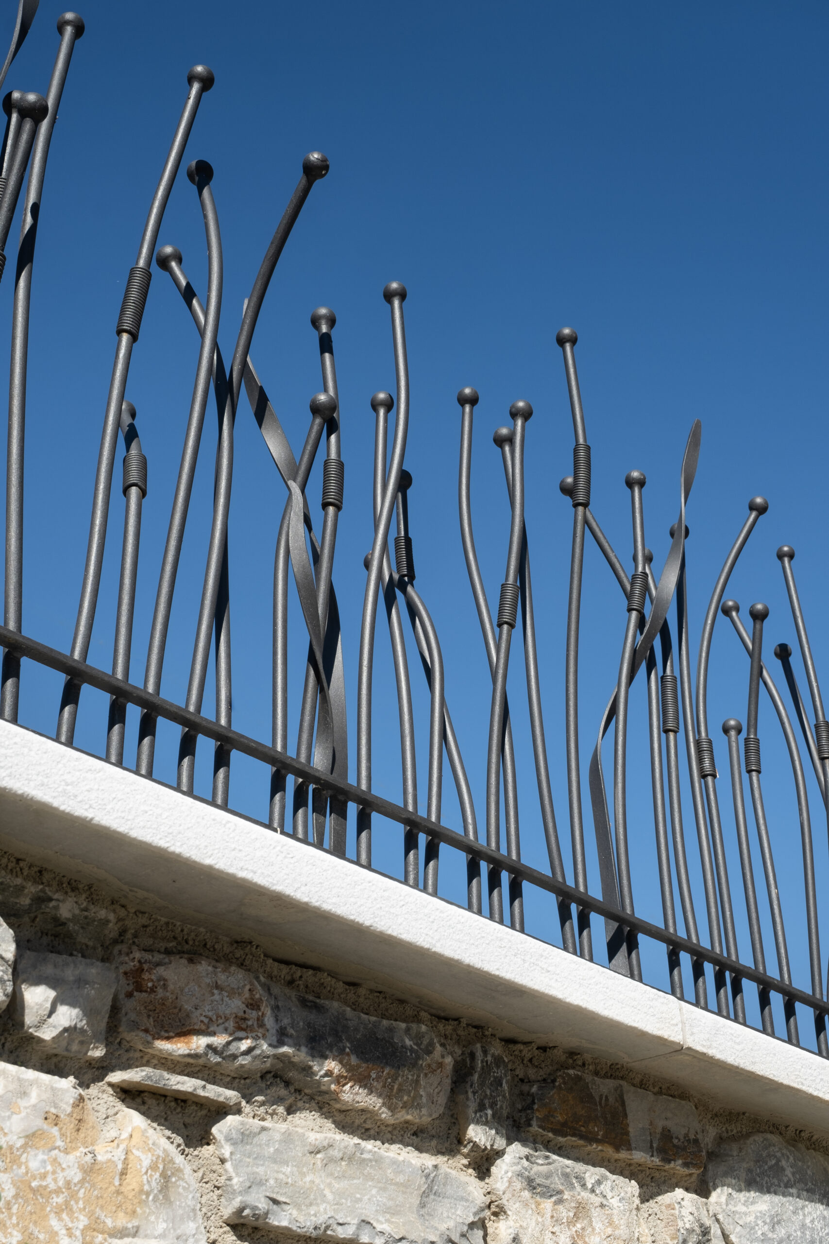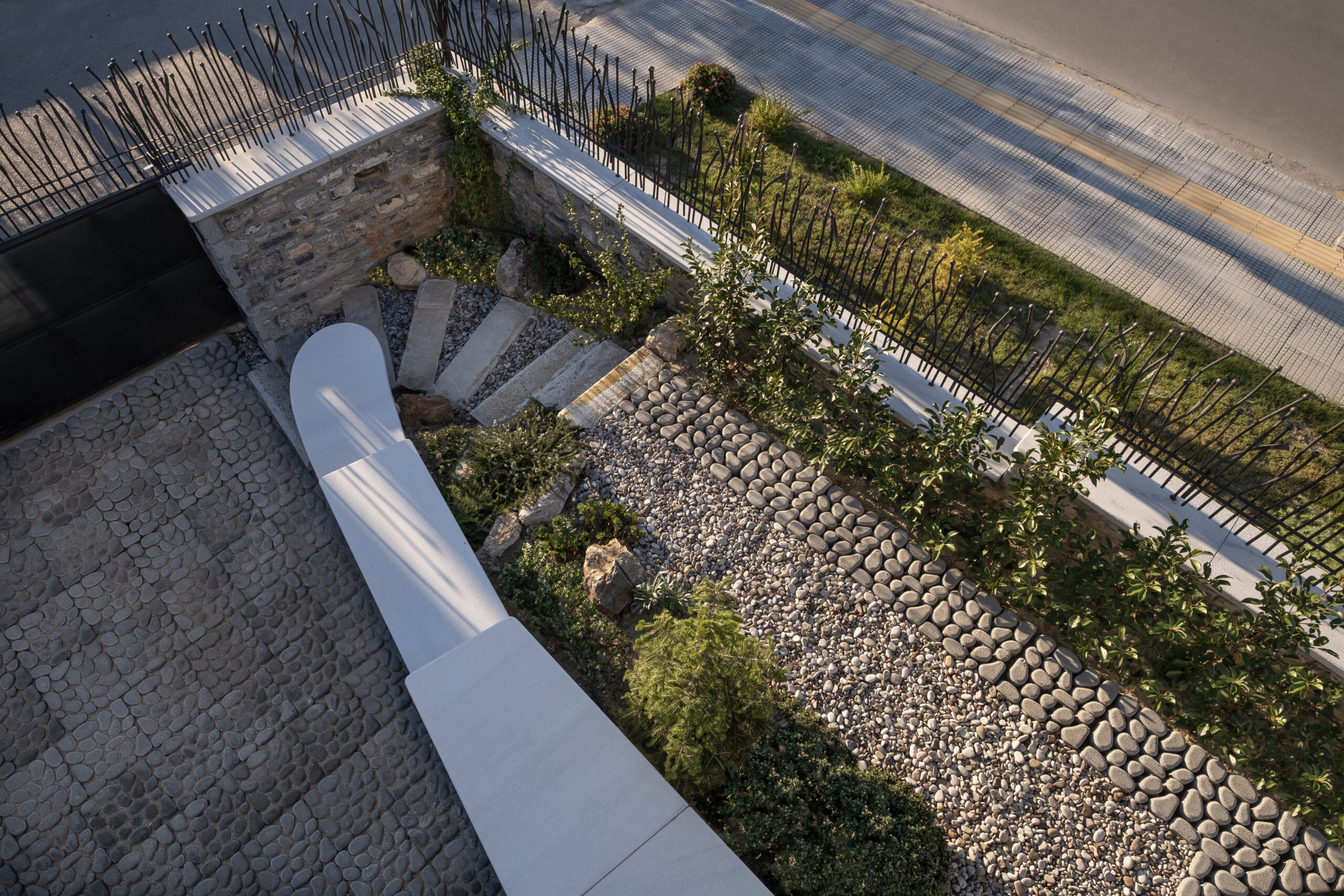 Ιδιαίτερη προσοχή έχει δοθεί στον σχεδιασμό της περίφραξης. Πιο συγκεκριμένα, η περίφραξη, με έμπνευση από οργανικές φόρμες που παραπέμπουν σε κλαδιά, επιχειρεί να δημιουργήσει έναν διάλογο με τη φύτευση. Απώτερος στόχος είναι, με την πάροδο του χρόνου, καθώς τα φυτά θα αναπτυχθούν, το σύνολο να μετασχηματιστεί σε μια ενιαία σύνθεση- ένα όριο που αναπνέει και μεταβάλλεται. Το φυτεμένο όριο, οι πεζόδρομοι με υδατοδιαπερατούς κυβόλιθους και ο φωτισμός καθοδηγούν τον επισκέπτη στην κύρια είσοδο.