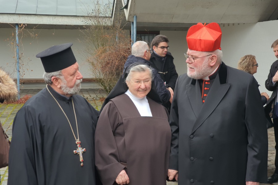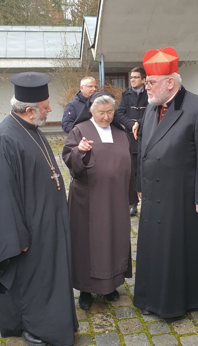 Μετά τη θεία Λειτουργία ο Καρδινάλιος Μονάχου Marx, ο Πρωτοπρεσβύτερος Απόστολος Μαλαμούσης και η Ηγουμένη της Μονής Irmergard είχαν στην αυλή της Μονής μια σύντομη εγκάρδια συζήτηση σχετικά με τη τιμή των Αγίων στη Ρωμαιοκαθολική και στην Ορθόδοξη Εκκλησία.