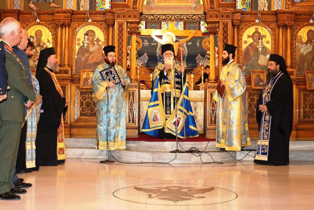 Ο σεβασμιότατος, στην ομιλία του, εξήρε την μακρά παράδοση, που επικρατεί στην πατρίδα μας, να υπάρχουν Προστάτες Άγιοι στον Στρατό, στην Αστυνομία και αλλού, συνεχάρη δε και εξέφρασε την ευγνωμοσύνη του στους αστυνομικούς για το έργο που επιτελούν, «με απόλυτη ευσυνειδησία, εις βάρος και του εαυτού τους, ενίοτε, σε μια δύσκολη εποχή».