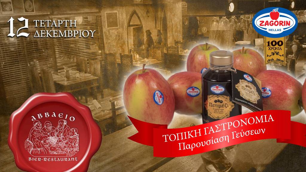 Για τη χειμερινή περίοδο 2018-2019 επιλέχθηκε να ενσωματωθούν επώνυμα ελληνικά προϊόντα στα προσφερόμενα είδη του καταστήματος. Έτσι ξεκίνησε η συνεργασία με τον αιωνόβιο Συνεταιρισμό, ώστε το ταξίδι των γεύσεων που παρουσιάζεται, να έχει προορισμό και τις κατάφυτες με μηλιές πλαγιές της Ζαγοράς. Στο μενού βρίσκονται προτάσεις για σαλάτα, κυρίως πιάτα και επιδόρπιο είτε με μήλα είτε με πετιμέζι “ZAGORIN”. Η εκδήλωση παρουσίασης των τοπικών γεύσεων θα διεξαχθεί την Τετάρτη 12.12.2018 και ώρα 21:30 με τη συμβολή του δημοσιογράφου Δημήτρη Μαρέδη, ο οποίος θα παρουσιάσει τη γενικότερη φιλοσοφία αυτών των αναγκαίων για την ανάπτυξη του τόπου συνεργειών. Οι παραβρισκόμενοι θα έχουν την ευκαιρία να δοκιμάσουν και επιλογές μενού που θα ετοιμαστούν αποκλειστικά για την ημέρα, με προϊόντα “ZAGORIN”.
