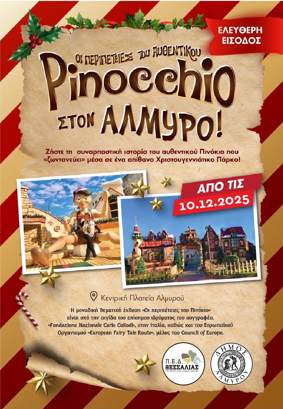 Μια ολοκληρωμένη θεματική εμπειρία που ζωντανεύει την κλασική ιστορία του Πινόκιο ήρθε από χθες στην Κεντρική Πλατεία του Αλμυρού, προσφέροντας χαρά και χαμόγελα σε μικρούς και μεγάλους. Στο χωριό του Πινόκιο τα παιδιά περπατούν ανάμεσα στα ξύλινα σπιτάκια, συναντούν αγαπημένους ήρωες, ενώ ειδικά σκηνοθετημένα δρώμενα κάνουν τη διάσημη περιπέτεια να ξετυλίγεται μπροστά στα μάτια τους.
