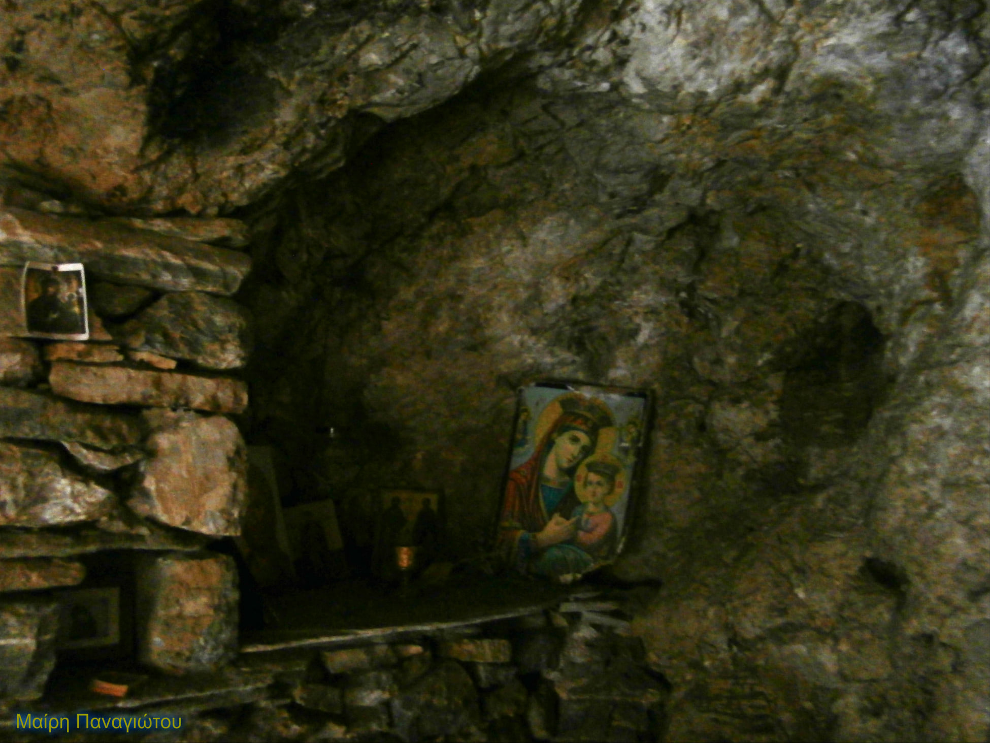 Δίπλα στο εκκλησάκι -επίσης σε μεγάλο κοίλωμα του βράχου- υπάρχουν ερείπια κτίσματος, που μαρτυρούν την ύπαρξη κελιών ,πολύ παλιά βέβαια,αν κρίνουμε και από την επιγραφή στο οριζόντιο δοκάρι επάνω από ένα παράθυρο-πόρτα. Με δυσκολία διαβάζουμε (περισσότερο υποθέτουμε) ”.. ΤΩ ΠΑΝΩΣΙΩΤΑΤΩ ΚΩ ΔΑΒΙΔ ΙΕΡΟΜΟΝΑΧΟΥ ΕΤΟΣ ΑΧΝς” (1656).