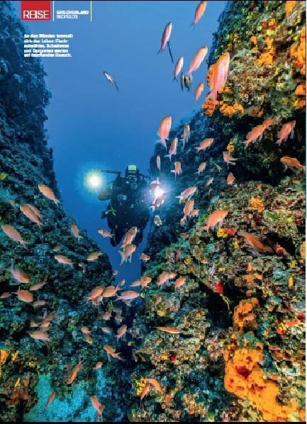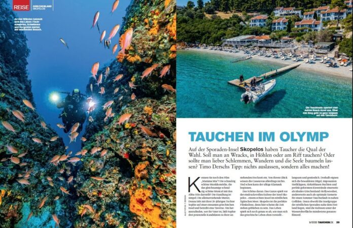«Όνειρο για τους αυτοδύτες» αποκαλείται η Σκόπελος, σύμφωνα με το εντυπωσιακό άρθρο που δημοσιεύθηκε στο τελευταίο τεύχος του περιοδικού Tauchen Magazin. Ο συντάκτης του άρθρου επισκέφτηκε στις αρχές του φετινού καλοκαιριού το νησί του “Mamma Mia” ως προσκεκλημένος της Επιτροπής Τουρισμού του Δήμου Σκοπέλου και εντυπωσιάστηκε από τη ζωή, κάτω αλλά και πάνω από τα σμαραγδένια νερά του προορισμού.