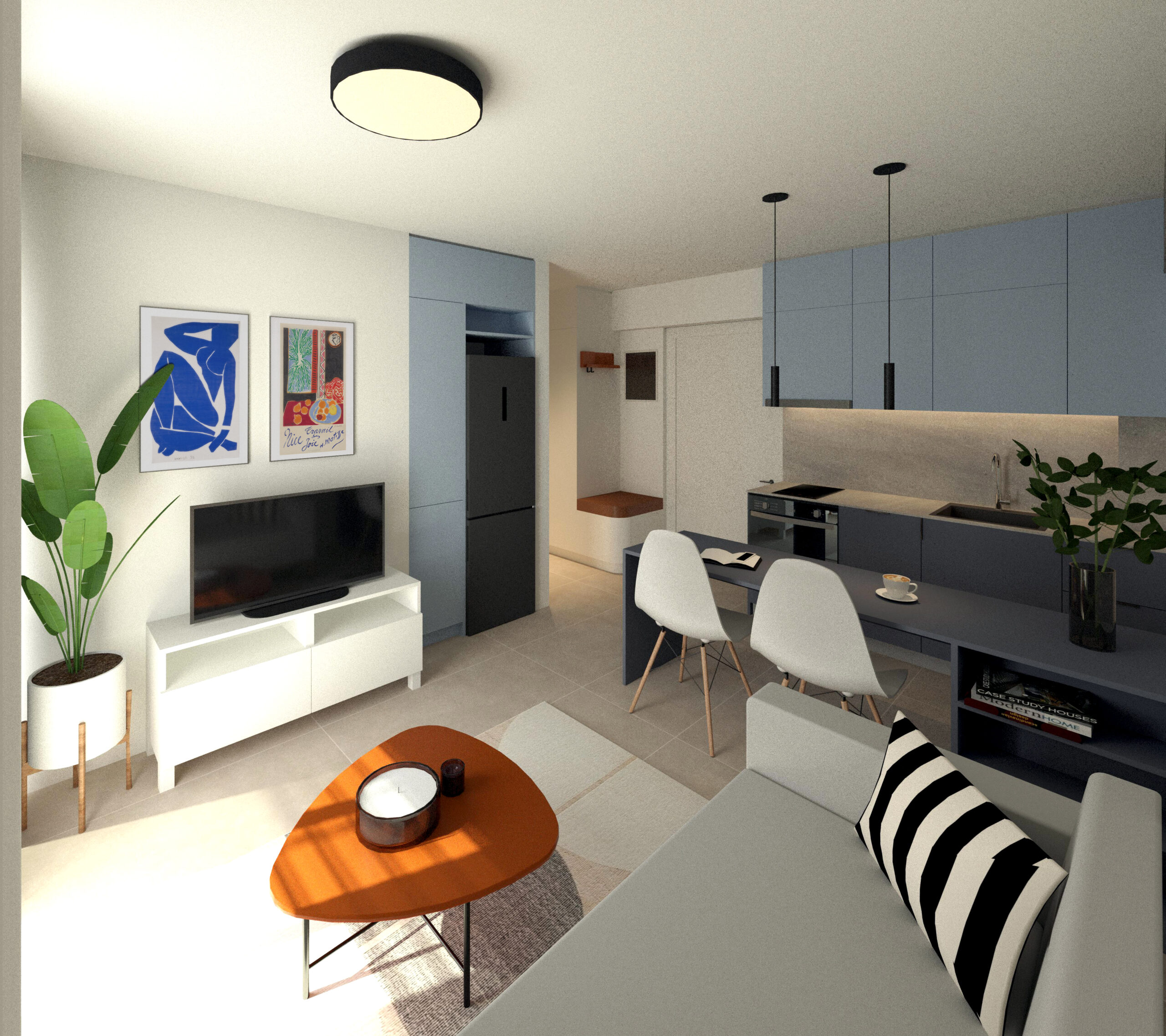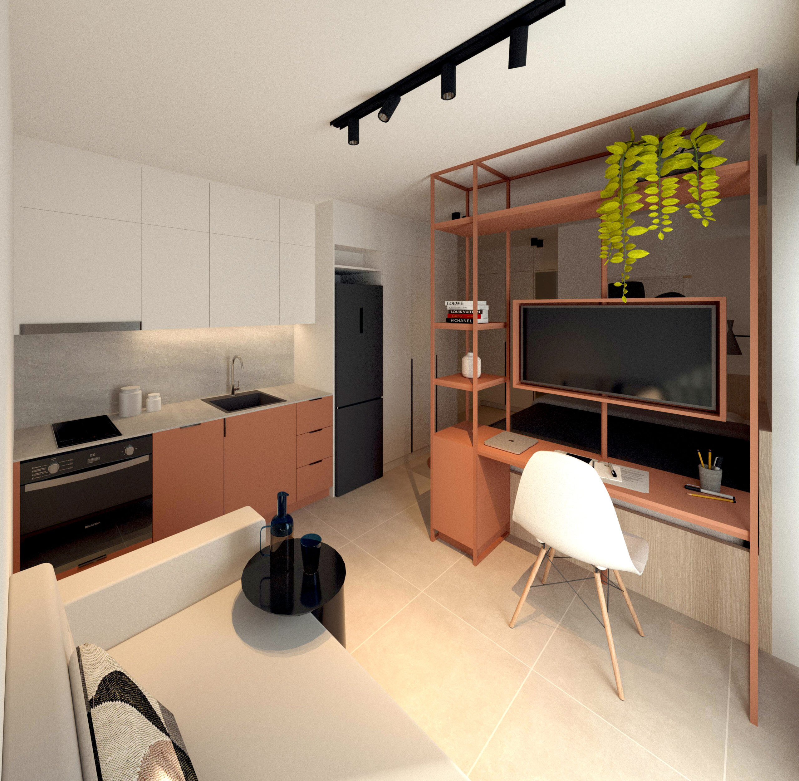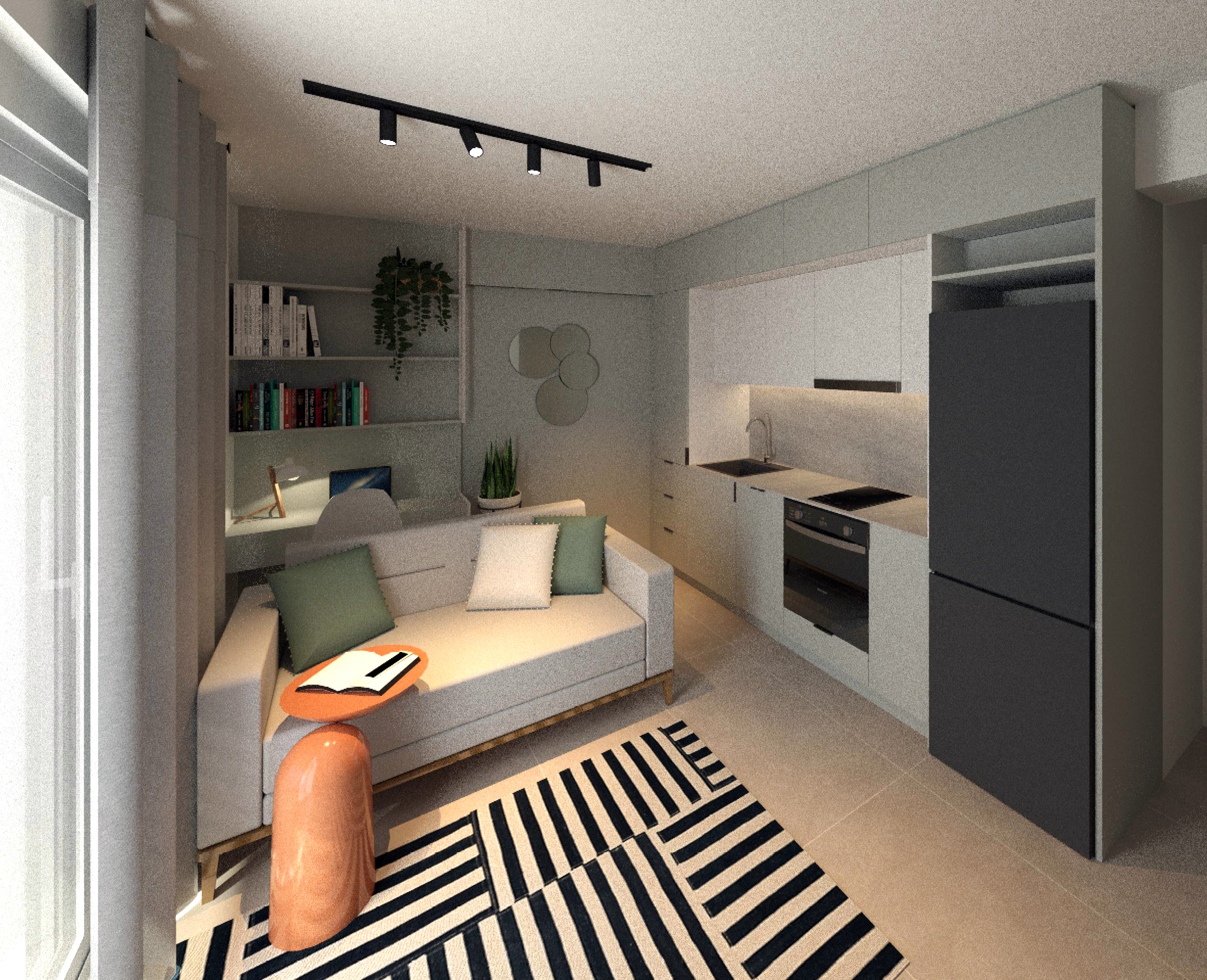 Στόχος της αρχιτεκτονικής ομάδας είναι η δημιουργία αυτόνομων, λειτουργικών, και ταυτόχρονα αισθητικά αναβαθμισμένων χώρων για κάθε διαμέρισμα ξεχωριστά. Η χρωματική παλέτα είναι έντονη, με χρώματα που λειτουργούν συμπληρωματικά στην ποσότητα και την κατεύθυνση του φυσικού φωτός που δέχεται κάθε διαμέρισμα ξεχωριστά, και μια open plan κάτοψη, προκειμένου να μεγιστοποιείται η αίσθηση ευρυχωρίας, παρά τα περιορισμένα διαθέσιμα τετραγωνικά μέτρα. Ο διαχωρισμός των χρήσεων και των όγκων εσωτερικά επιτυγχάνεται με τη διαφοροποίηση των χρωμάτων και των υλικών.