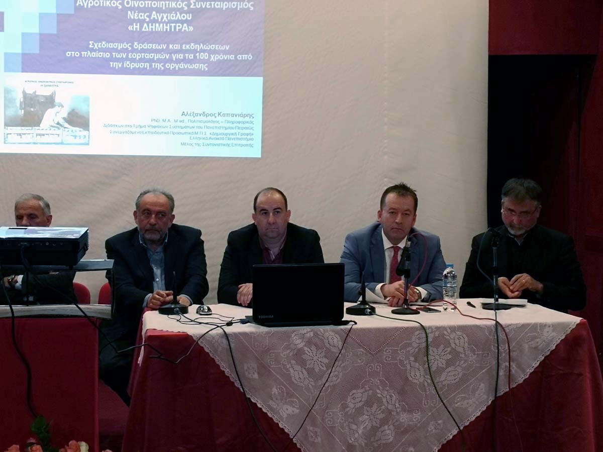 “Είναι εξαιρετικά σημαντικό για τον πρωτογενή τομέα αλλά και για την εθνική οικονομία, η ύπαρξη συνεταιρισμών οι οποίοι αντέχουν στο χρόνο, χτίζοντας ένα προφίλ αξιοπιστίας και προσαρμόζονται στις αυστηρές και άκαμπτες απαιτήσεις που επιβάλλει η παρουσία προϊόντων όπως το κρασί και το τσίπουρο, στις παγκοσμιοποιημένες διεθνείς αγορές”. Με τα παραπάνω λόγια ο υφυπουργός Αγροτικής Ανάπτυξης και Τροφίμων κ. Βασίλης Κόκκαλης, απένειμε τα εύσημα στη διοίκηση και τα μέλη του Οινοποιητικού Συνεταιρισμού Νέας Αγχιάλου “Η Δήμητρα”, στο πλαίσιο της επετειακής εκδήλωσης για τα 100 χρόνια ζωής του.
