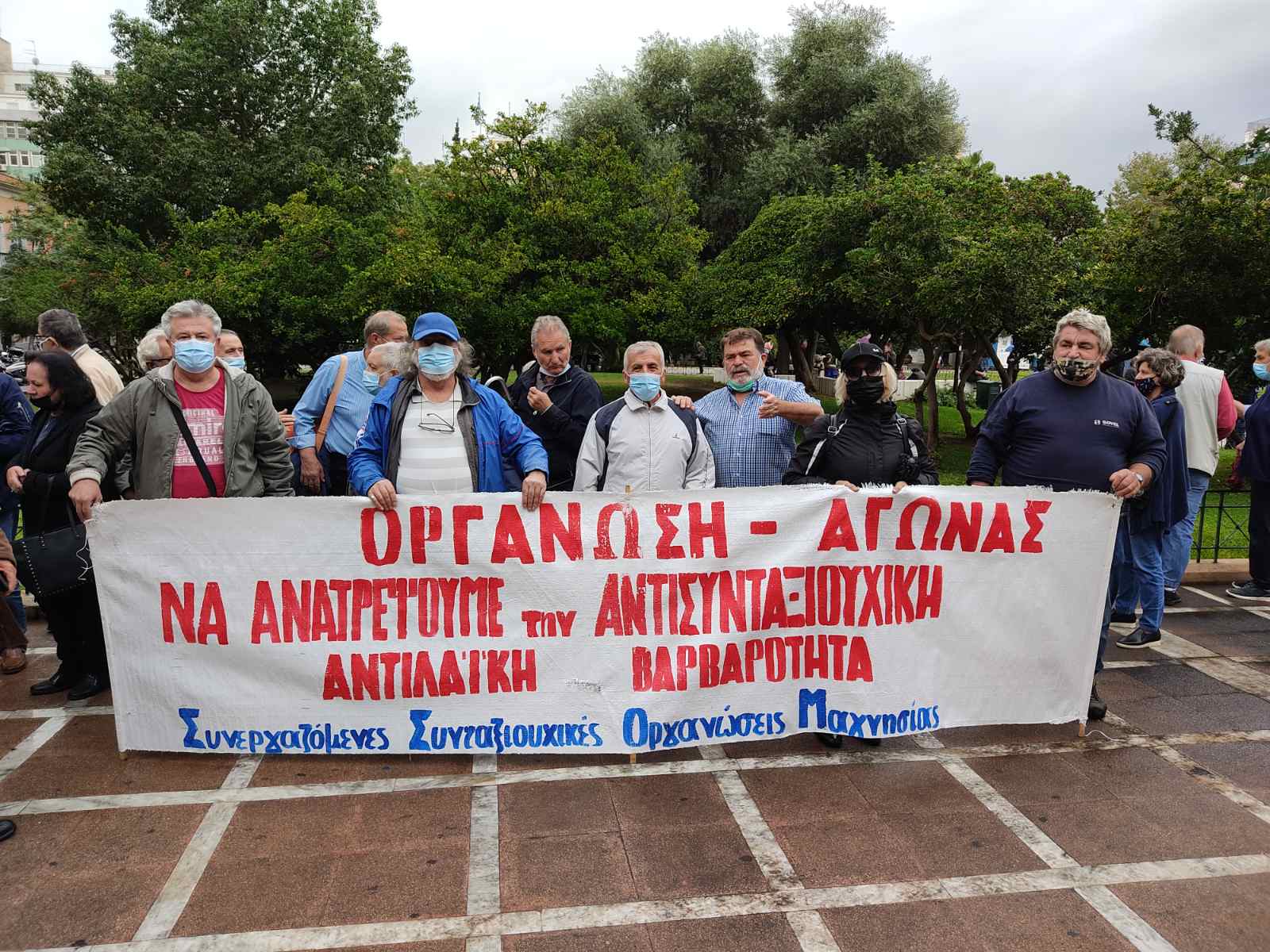 Όπως αναφέρεται σε ανακοίνωση, «παρά τις δυσμενείς καιρικές συνθήκες, χιλιάδες συνταξιούχοι από κάθε γωνιά της χώρας, από τη Θεσσαλονίκη, τον Έβρο, τις Σέρρες, τη Δράμα, την Αιτωλοακαρνανία, τη Θεσπρωτία, την Θεσσαλία, την Κρήτη, το Ναύπλιο, τη Μεσσηνία, την Αμαλιάδα κ.α. έδωσαν το παρόν στην κινητοποίηση και βροντοφώναξαν: «Για τους συνταξιούχους δεν υπάρχει μία, λεφτά υπάρχουν μόνο για την πλουτοκρατία» και «Εμπρός λαέ μη σκύβεις το κεφάλι, ο μόνος δρόμος είναι αντίσταση και πάλη».
