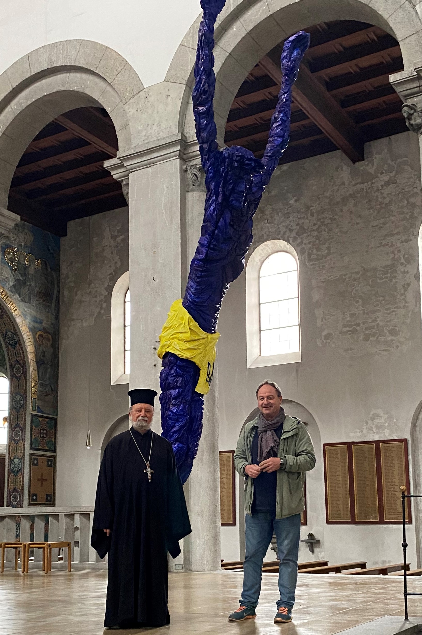 Ένα ξυλόγλυπτο σώμα βαμμένο με τα χρώματα της Ουκρανικής σημαίας είναι τοποθετημένο σε ναό του Μονάχου εις ένδειξη αλληλεγγύης στον ουκρανικό λαό που δοκιμάζεται από τον πόλεμο, όπως γίνεται γνωστό από τον Μαγνησιώτη Πρωτοπρεσβύτερο Απόστολο Μαλαμούση μέσω σχετικής ανακοίνωσης.