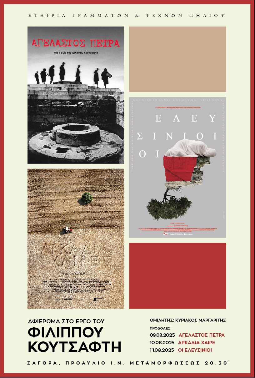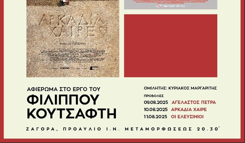 Αφιέρωμα στο έργο του Φίλιππου Κουτσαφτή διοργανώνει η Εταιρία Γραμμάτων και Τεχνών Πηλίου το τριήμερο 9,10 &11 Αυγούστου, κάθε μέρα στις 20.30, στο προαύλιο του ναού της Μεταμορφώσεως Ζαγοράς.