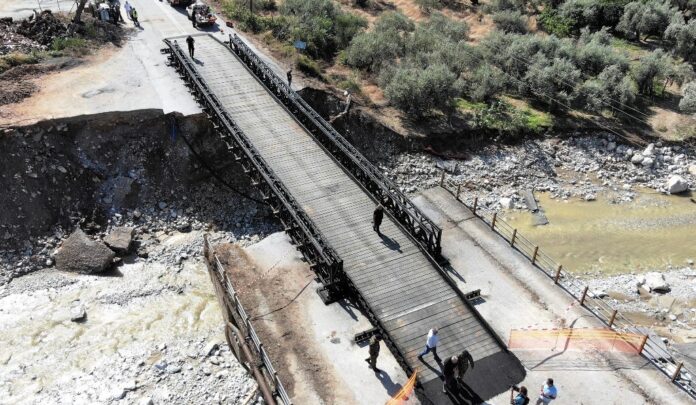 Γέφυρα ξεκίνησε να στήνει ο Στρατός προκειμένου να αποκατασταθεί η κυκλοφορία ανάμεσα σε Μούρεσι και Κισσό.