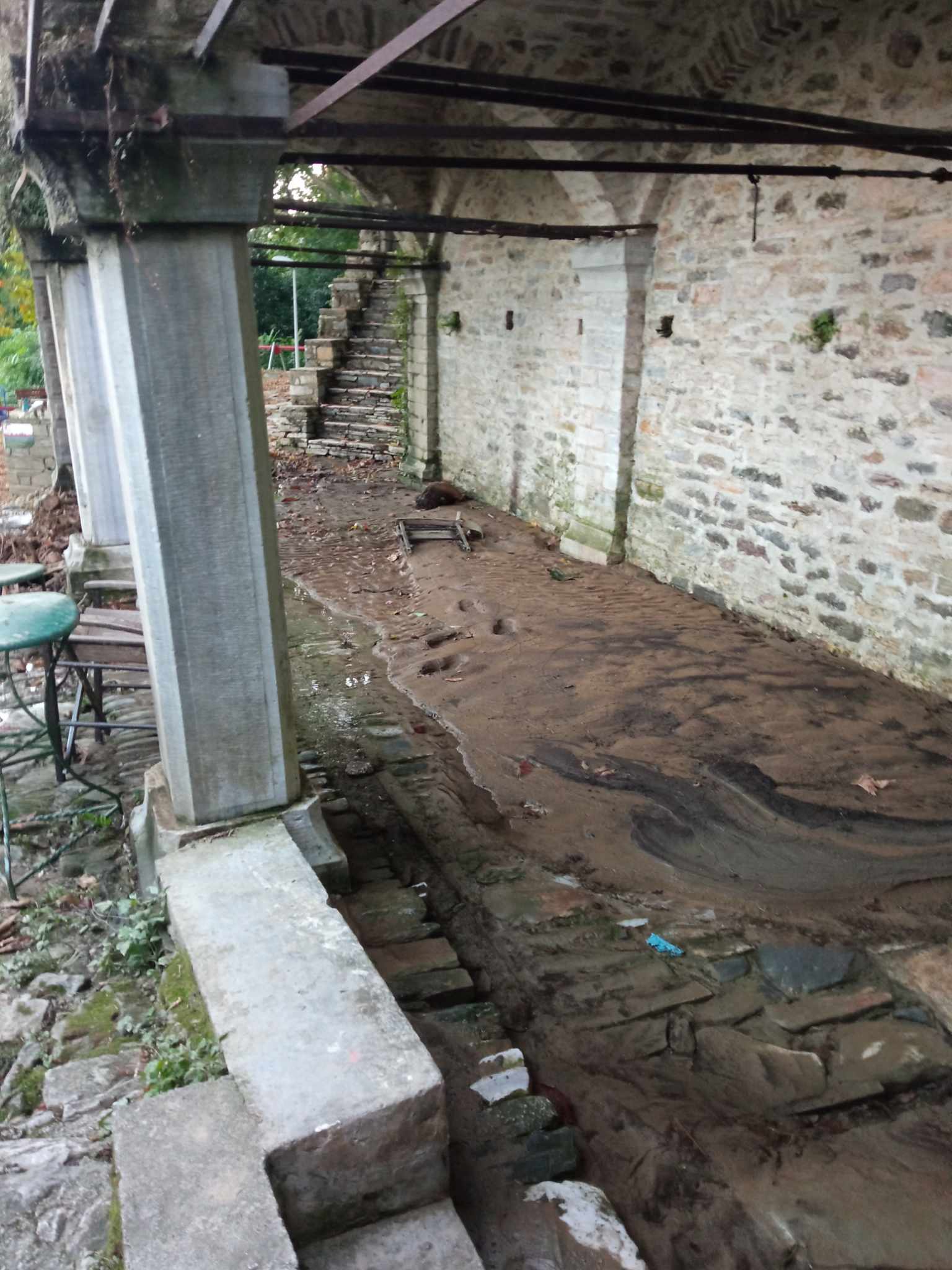 Ενημερωτικά, έχει ήδη δρομολογηθεί ο συντονισμός για τον καθαρισμό της πλατείας και εξετάζονται οι επιλογές αποκατάστασης του πεσμένου γεφυριού και του τμήματος του καλντεριμιού που έχει καταρρεύσει κάτω από το Αχιλλοπούλειο.